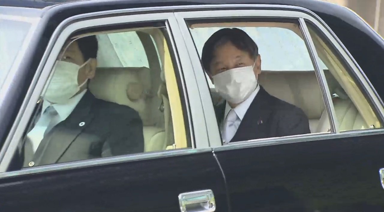この日、天皇陛下は宮中祭祀のため皇居へと入られました。いつもは車内の隣にお付きの人がいるのですが、今回は後部座席からお一人、マスク姿で沿道の人たちに応えられていました。