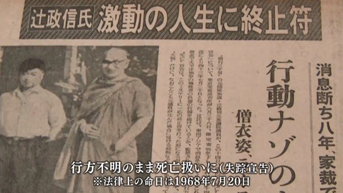 失踪から8年が経った1969年6月28日に、辻氏は行方不明のまま法律上、死亡と見なされた(法律上の命日は1968年7月20日)。