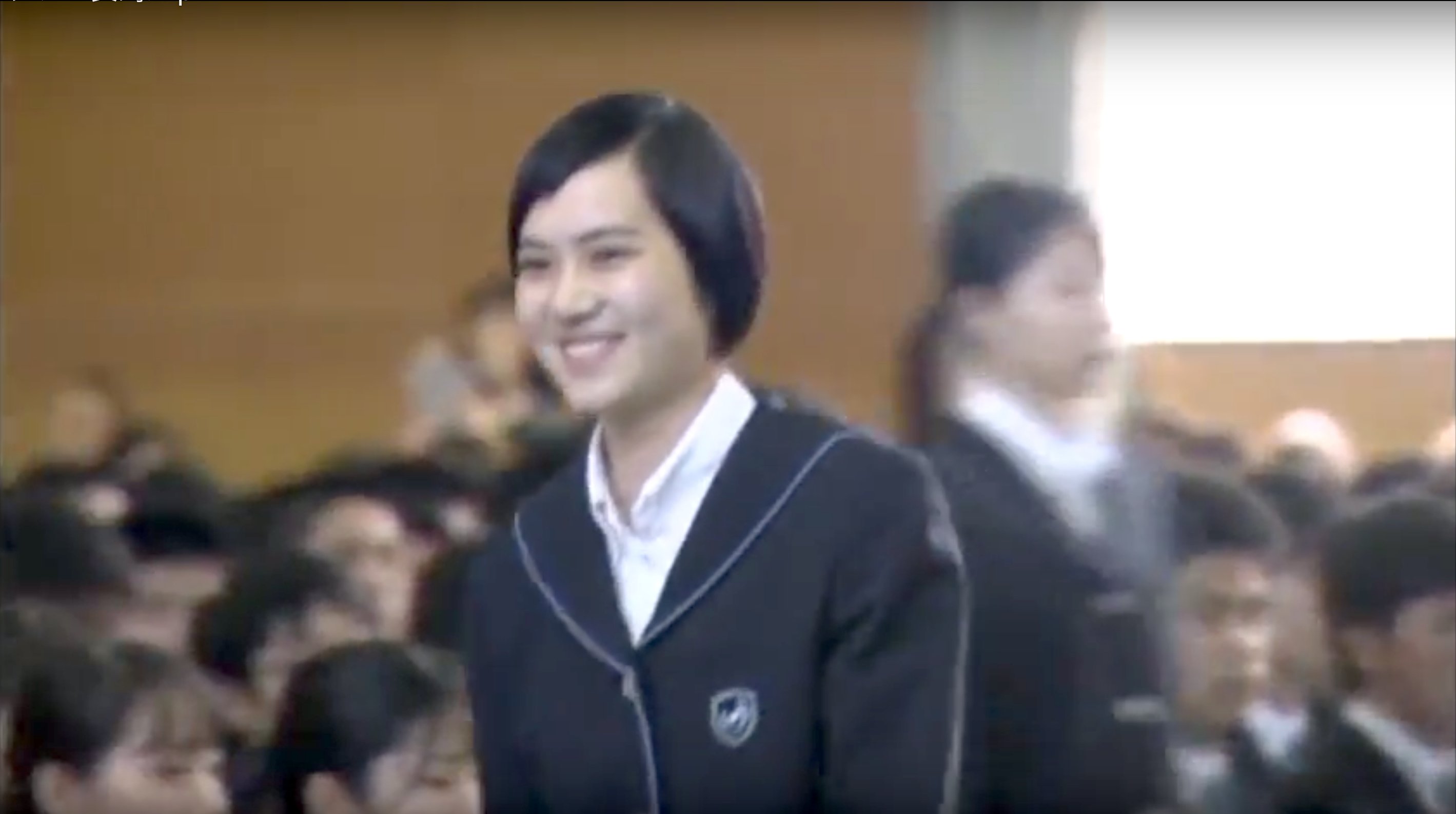 中学の卒業式では、抗癌剤治療中の感染症を避けるため、別の場所から壇上へ上がったが、今回はクラスメイトと同じ会場から壇上へと向かう。家族と目があった夢華さんは照れ笑いのような笑みを見せていた。