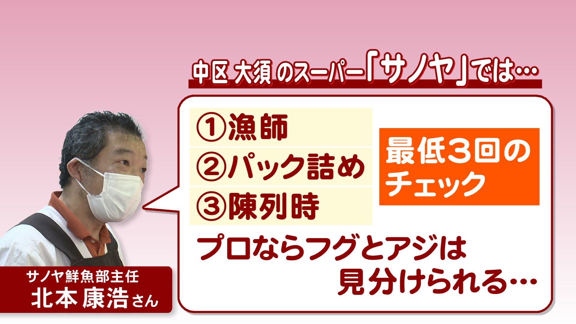 サノヤでは、漁師が箱詰めする段階で異物がないかチェックし、店に届きスタッフがパック詰めをする段階でチェック、店頭に並べるときにもチェックと、最低3回はチェックをしているとのこと。また、担当者は「一般的に魚のプロなら見分けることはできるのでは」と話していた。