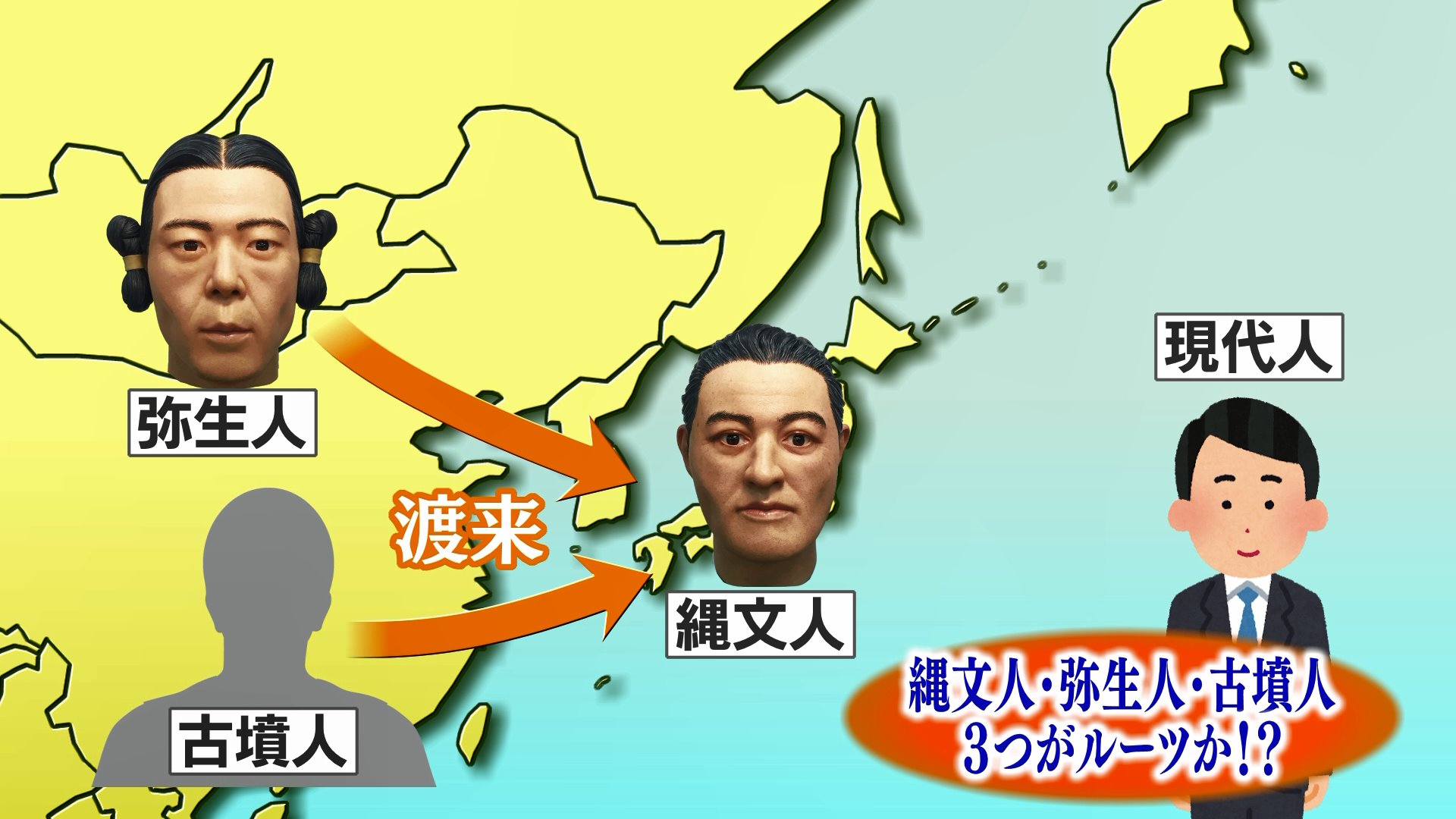 (石川テレビ・稲垣真一アナの顔は)少しのっぺりしている部分もあるので、弥生人以降の薄い顔立ちではないかと。部分的に見ると、少し彫りが深い部分もあるので、縄文人と弥生人の混合かな