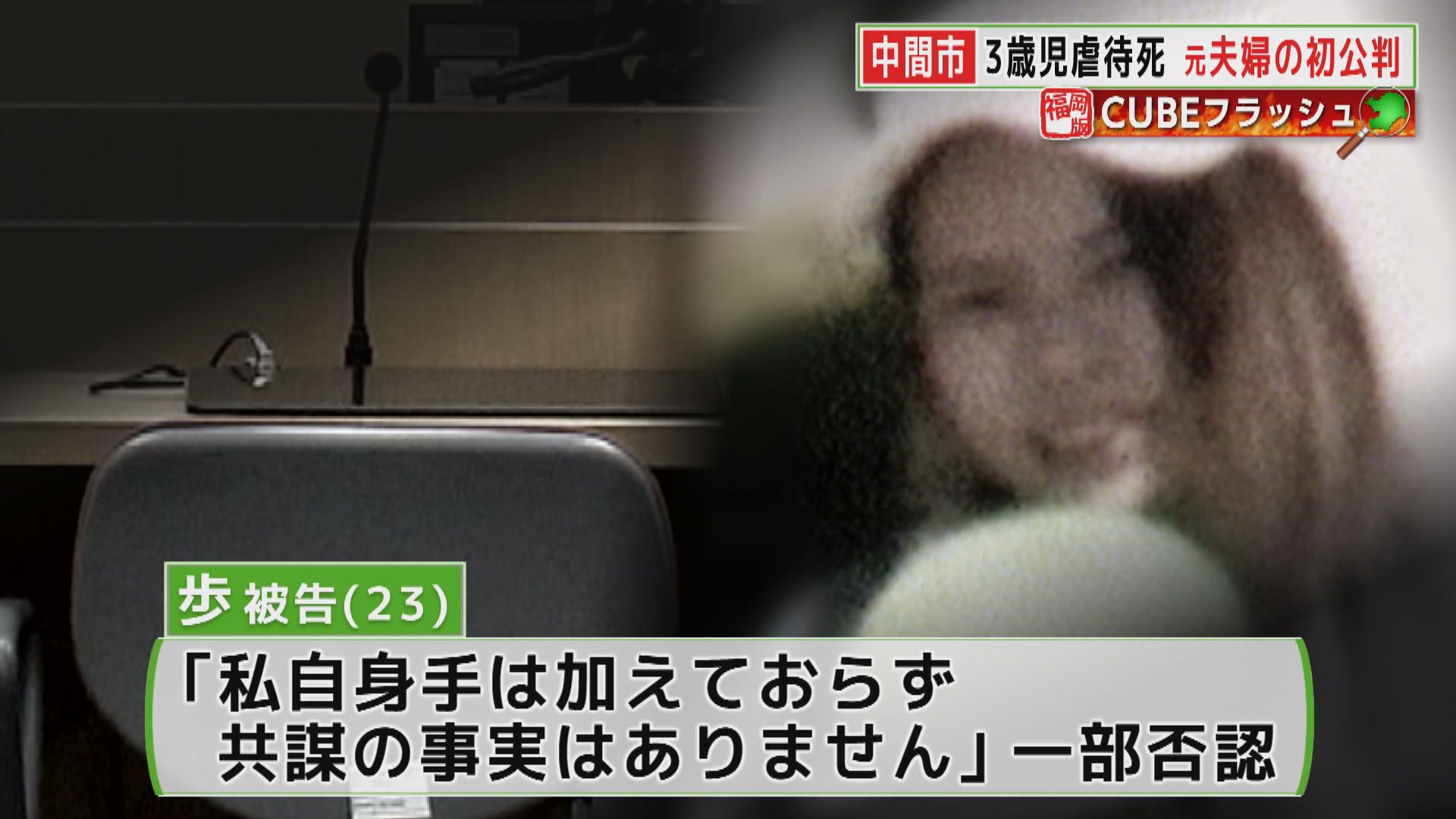 福岡県中間市で3歳の息子に虐待を繰り返し死亡させたとして、傷害致死の罪などに問われている夫婦の初公判が開かれ、妻は起訴内容の一部を否認した。