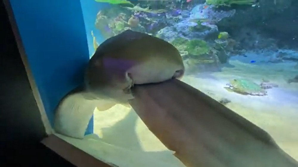 サメが仲間を“あむあむ”と噛んでいる様子が「思わず笑ってしまう」などと話題になっている。