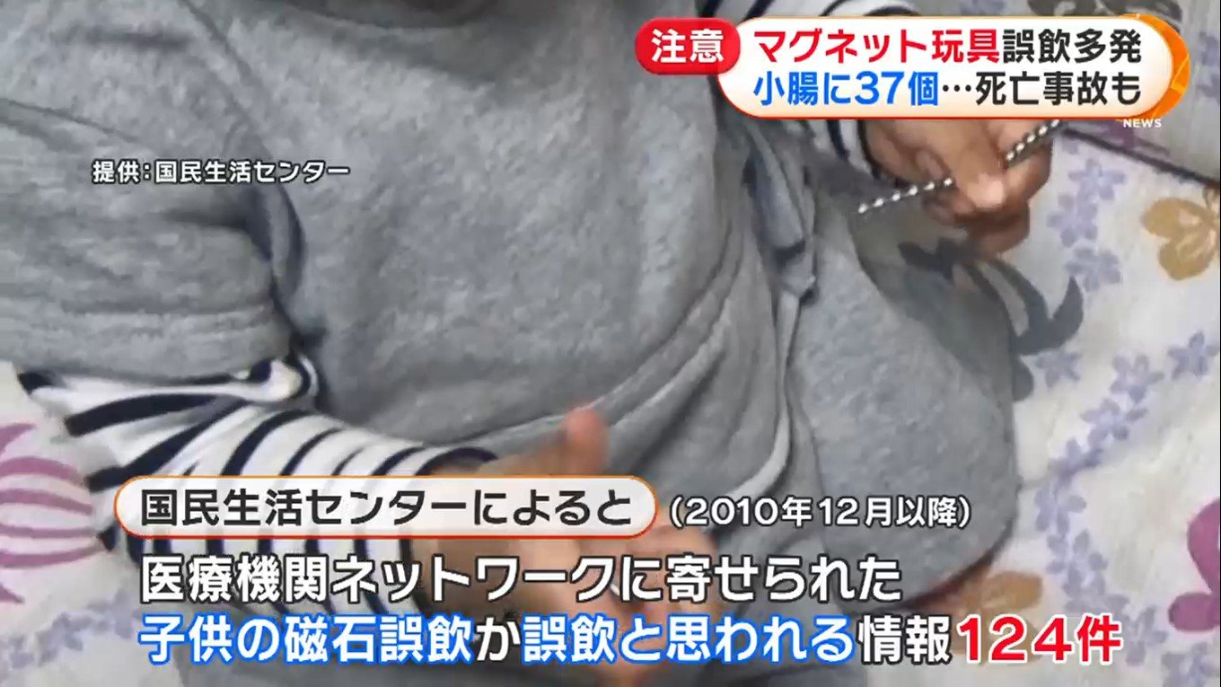 国民生活センターによると、2010年12月以降に医療機関ネットワークに寄せられた、子どもが磁石を誤飲した、もしくは誤飲したと思われる事故の情報は124件。