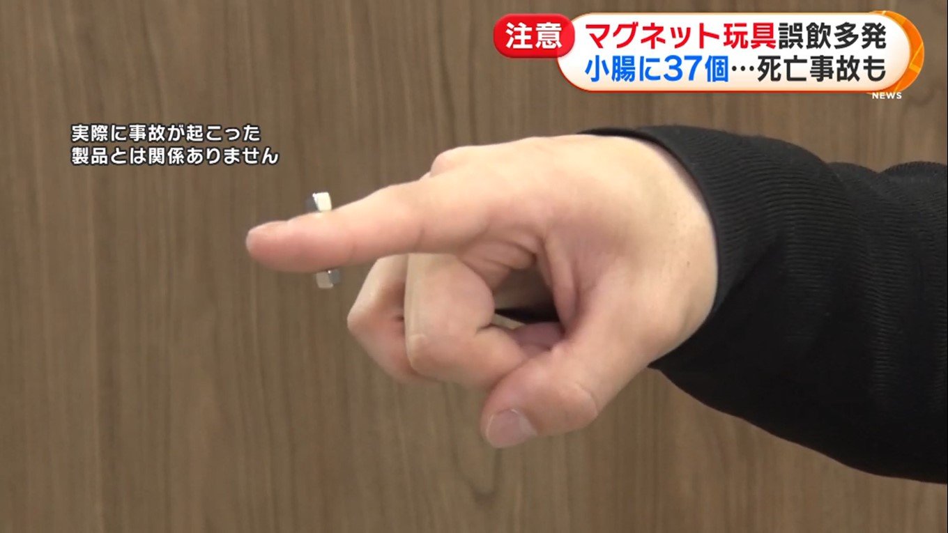 そのため、2個以上飲み込むと磁石同士がくっつき、腸管を挟んでしまう状態になる。さらにそのまま動かなくなって排出されず、海外では複数の死亡事故も起きている。