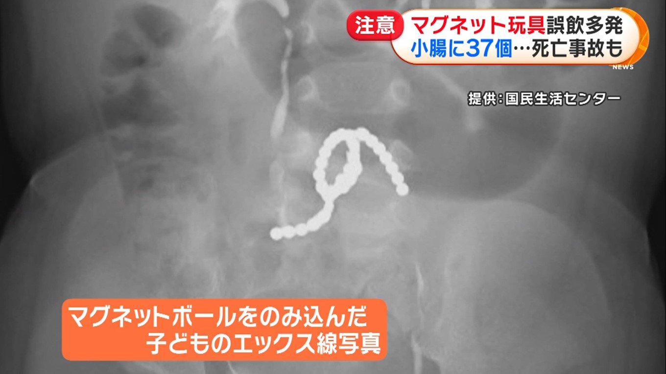 ある事例では、嘔吐を繰り返していた1歳9カ月の女の子の腸内から直径3ミリの磁石37個が見つかり、摘出。小腸に穴が開いていたという。