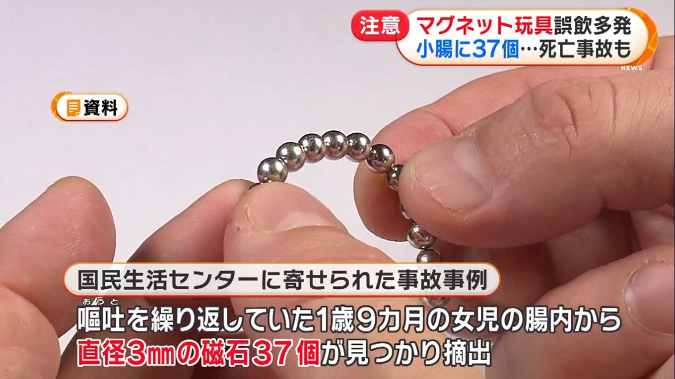 そんな中、マグネットボールやマグネットキューブを小さな子どもが誤飲する事故が多発していると、消費者庁が注意を呼び掛けている。