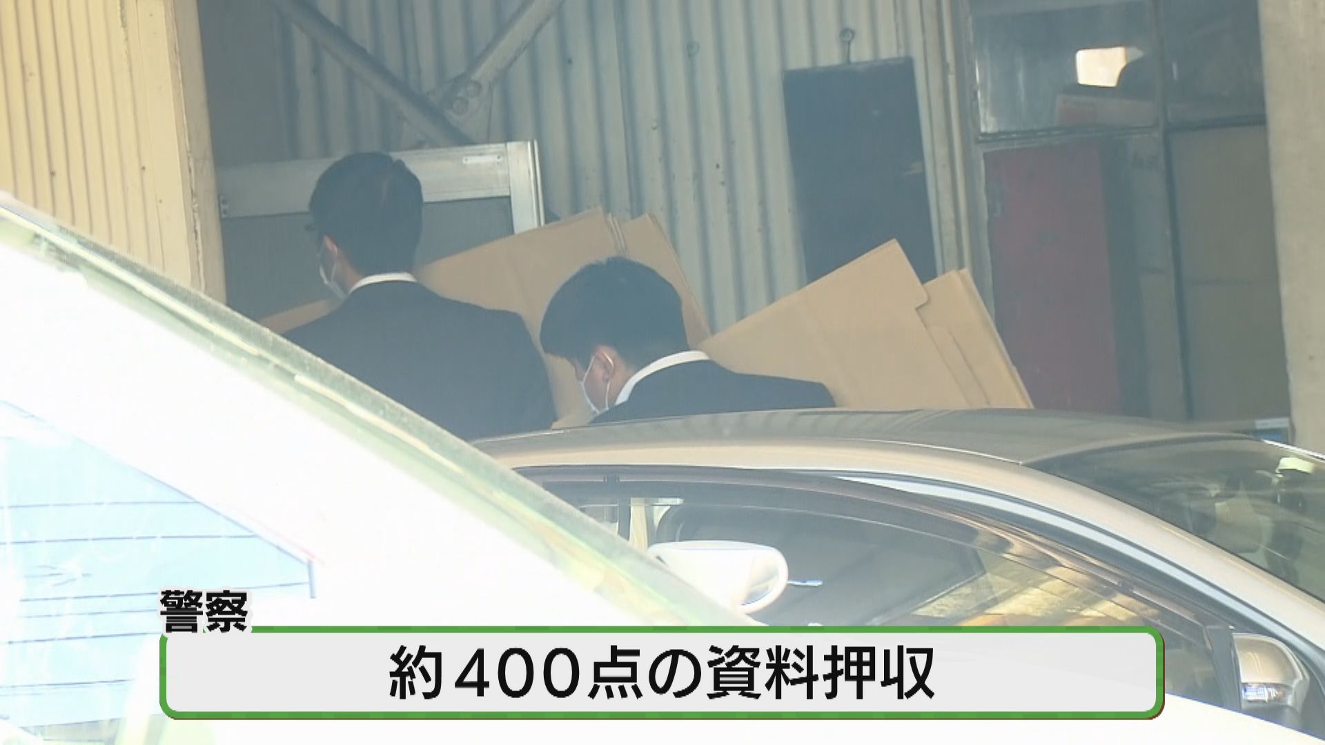 警察は家宅捜索で、前所有者の関係先から400点近くの資料を押収し、捜査を進めている。