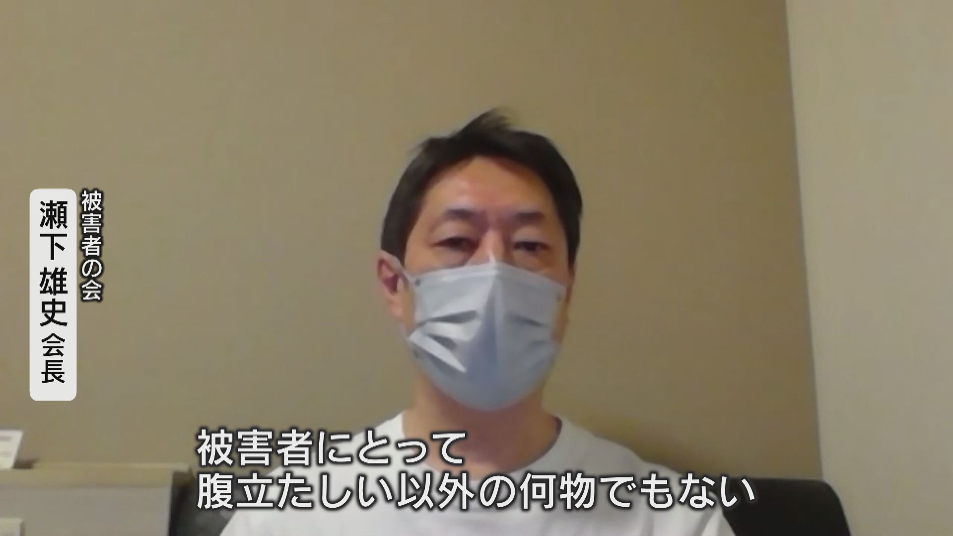 母親を亡くし、被害者の会の会長をつとめる瀬下雄史さんは、前土地所有者の主張・姿勢に強い憤りを感じている。