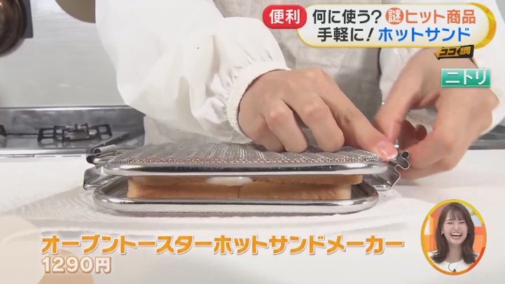 この網に、パンと具材を挟んで焼くだけで、簡単にホットサンドが作れる。「オーブントースターホットサンドメーカー」1290円。