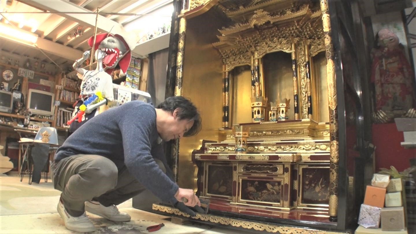 仏壇業界は今、生活様式の変化で仏壇を継承せずに廃棄する家庭が増えるなど、変革を迫られている。この仏壇職人の男性は、耐久性にも優れ、住宅事情にも左右されないコンパクトな仏壇を開発している。