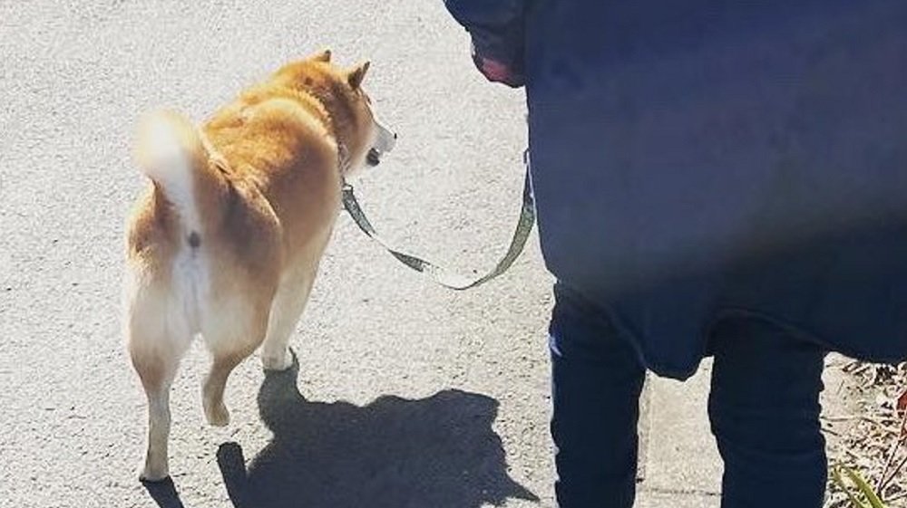 1匹の柴犬と青い上着の女性が散歩する姿を後ろから捉えた1枚の写真だ。なぜ、これが“柴犬の気遣い”になるのかというと、写真と共に投稿されたコメントに答えがある。