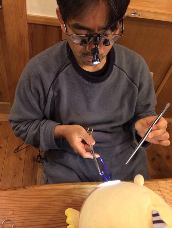 さっそく、サージカルルーペや鉗子、ピンセットなどの本格的な手術道具をずらりと用意し、縫合が始まったという。
