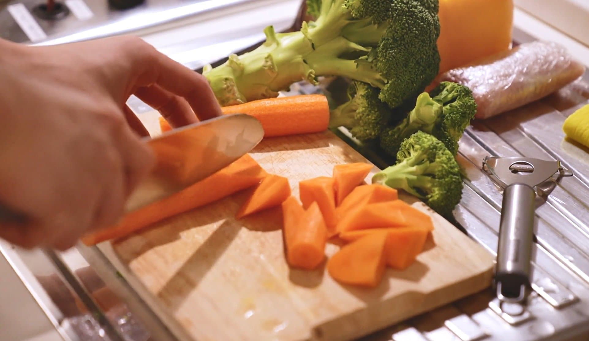 常に一緒です。 スープに入れるメインの野菜に関しては、パプリカ、ブロッコリー、ニンジン。そこを変えることはないですね。(作った)半分はその翌日のお昼だったり夕食で。今ニンジン切ったんですけど、ニンジンの切った数を数えて半分食べます。
