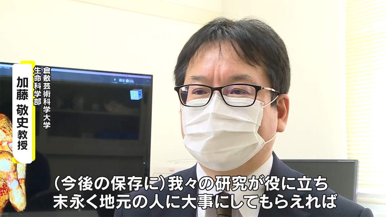 岡山・浅口市の寺に保存されている「人魚のミイラ」を科学的に分析している倉敷市の大学が、中間報告をまとめた。