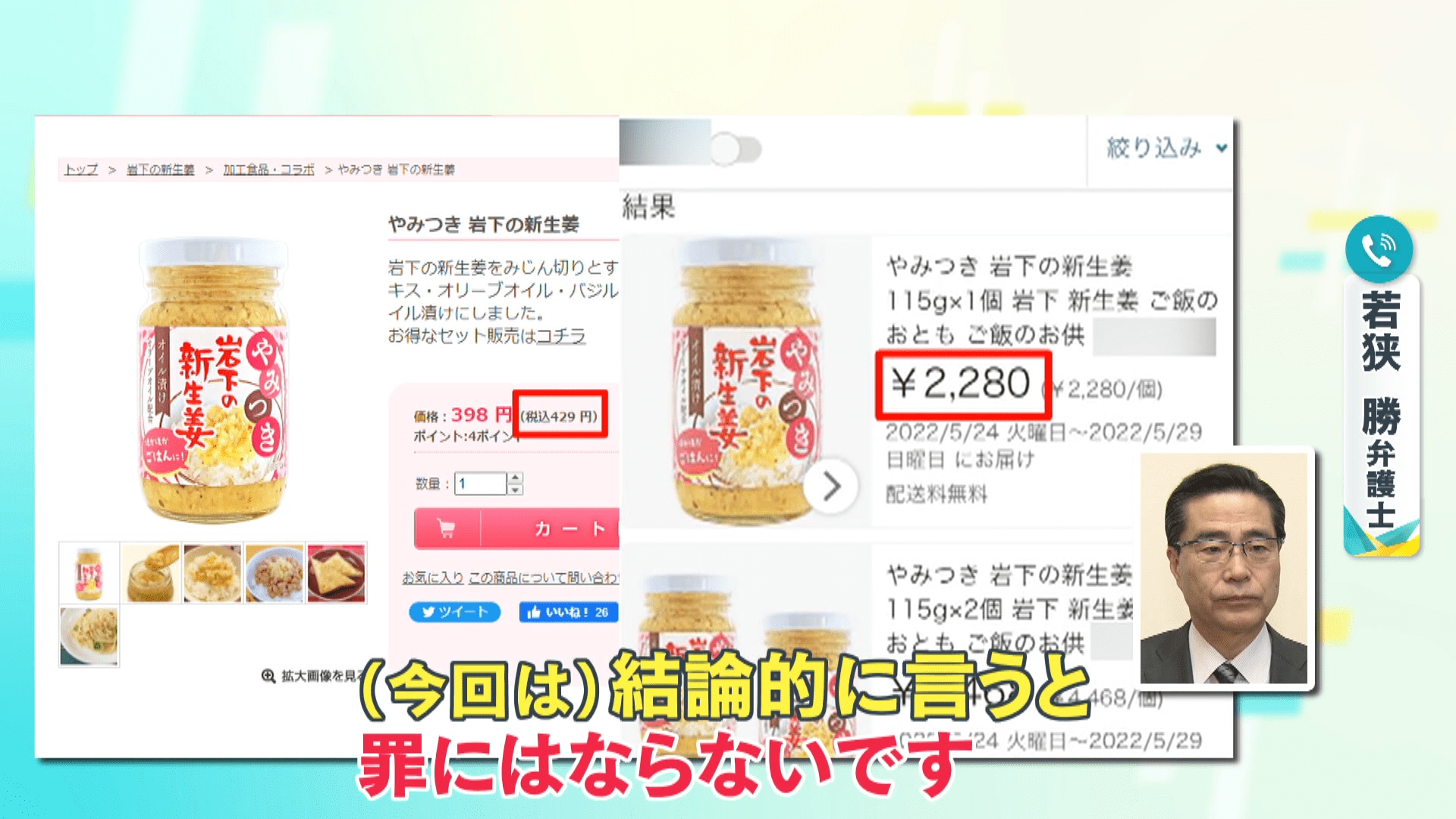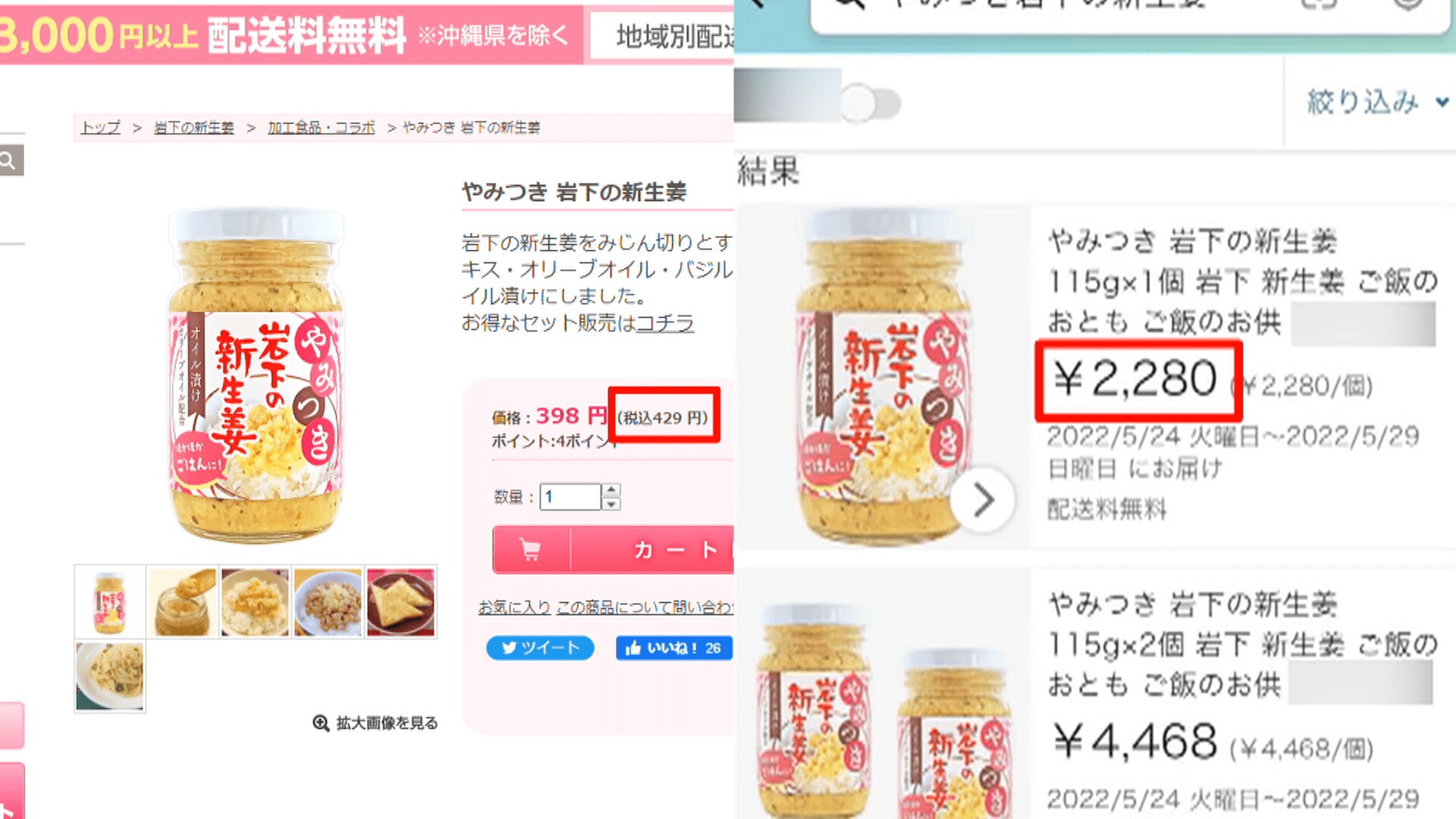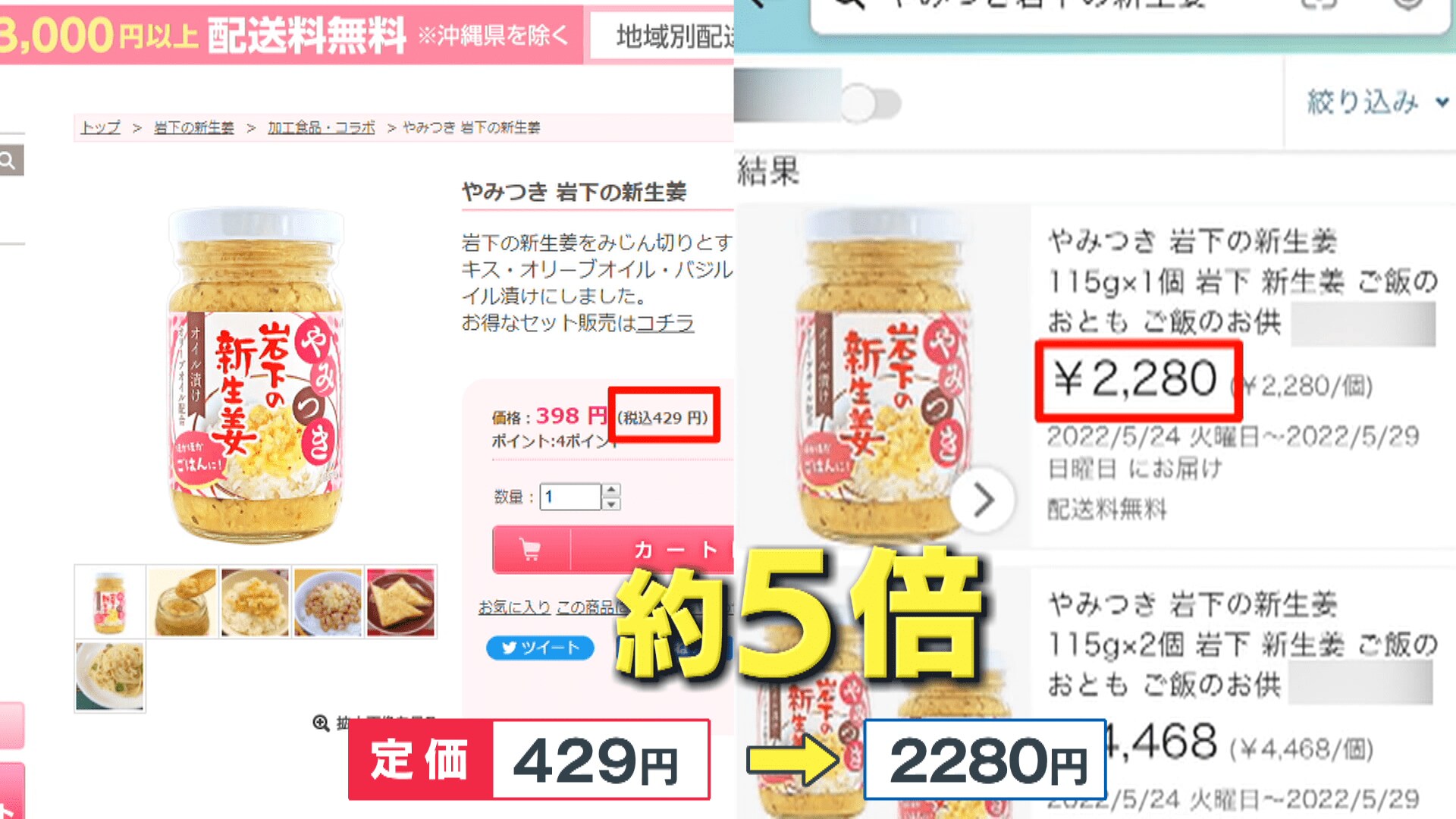 抗議します。やみつき岩下の新生姜1個2280円て、あり得ない。みんなだまされないで