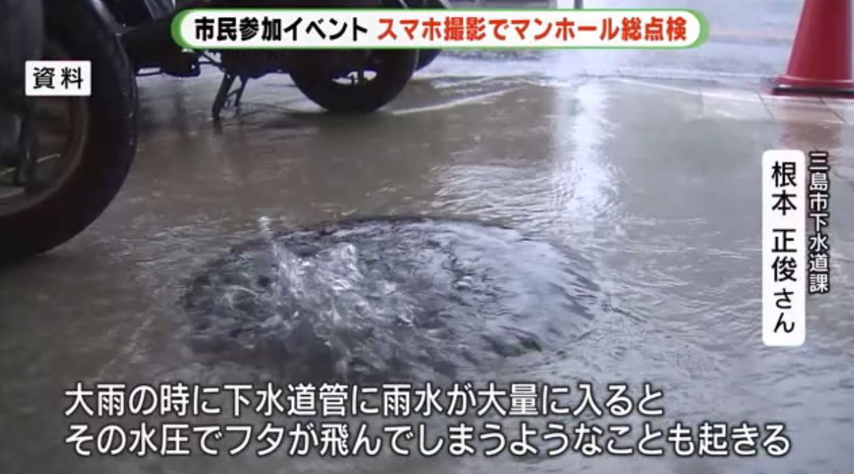 大雨の時に下水道管に雨水が大量に入ると、その水圧で(老朽化していると)フタが飛んでしまうことも起きます。冠水すると下が見えづらくなり、人が転落したり車が落ちてしまうという問題があります