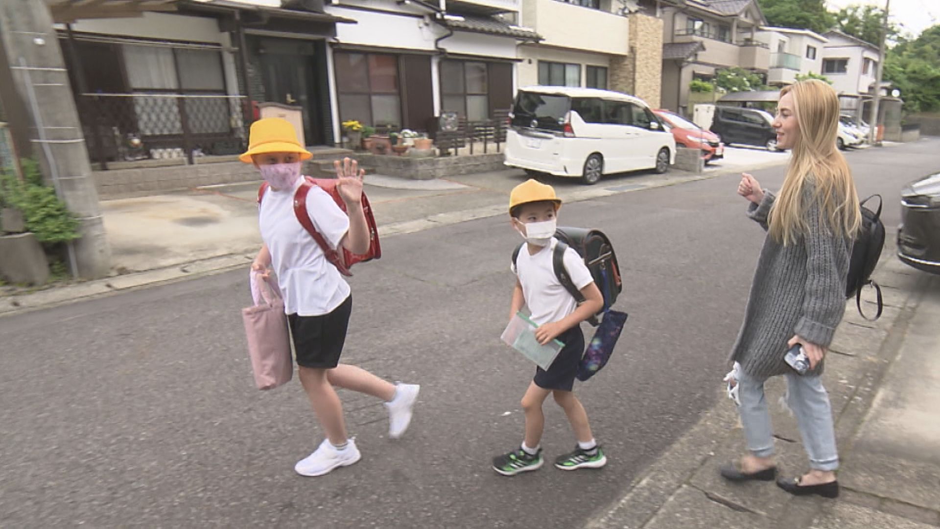 16日午前7時半。エヴァさん、いよいよ出発だ。初登校は日本で生まれ育ったいとこのニコラスくん(小2)と一緒。