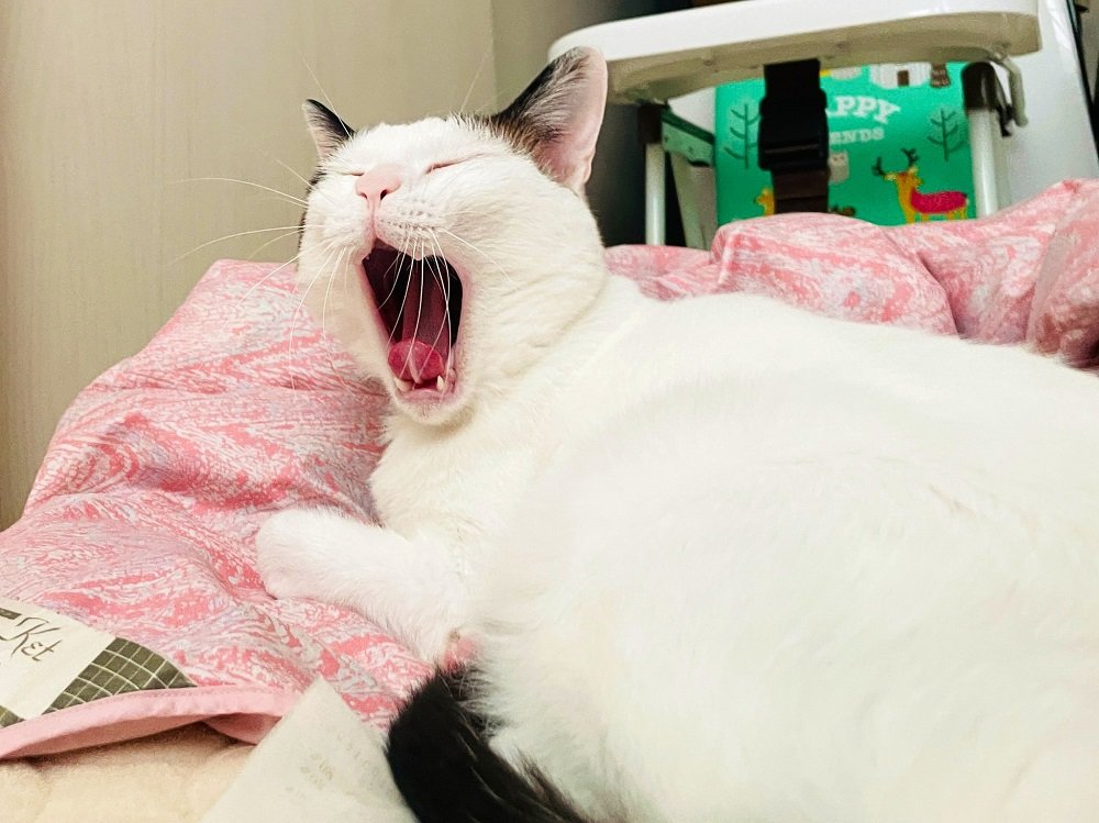 「あくびをしたら褒めてあげる」は今となってはお互いの約束と化しています。今後も“あくびコミュニケーション”を欠かさないよう、仲良く過ごしたいと思います!