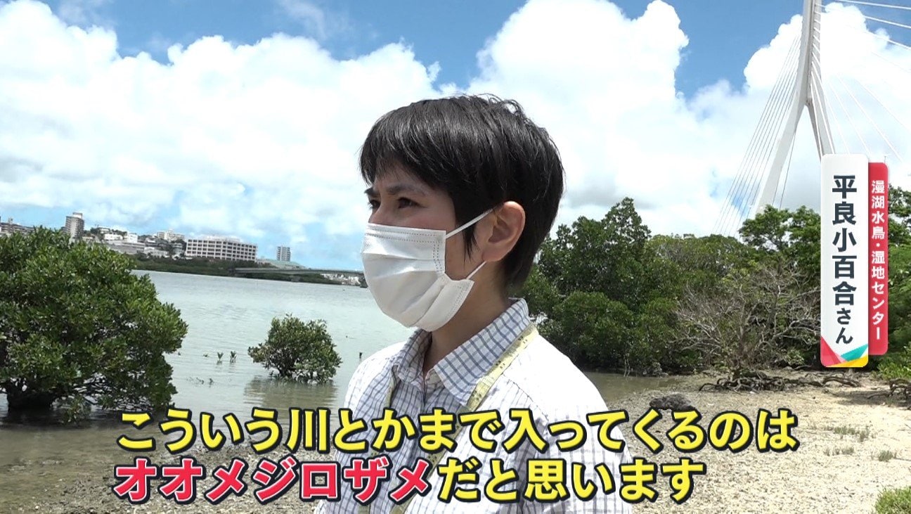 写真を撮影した「漫湖水鳥・湿地センター」の、平良小百合さんは「6月17日の夕方にこの川で見かけました。こういう川に入ってくるのはオオメジロザメだと思います」と話します。