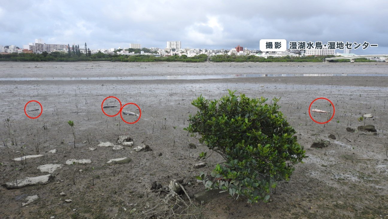 オオメジロサメが横たわっていたのは、沖縄県那覇市の中心部にほど近い干潟。河口から3キロほど上流です。