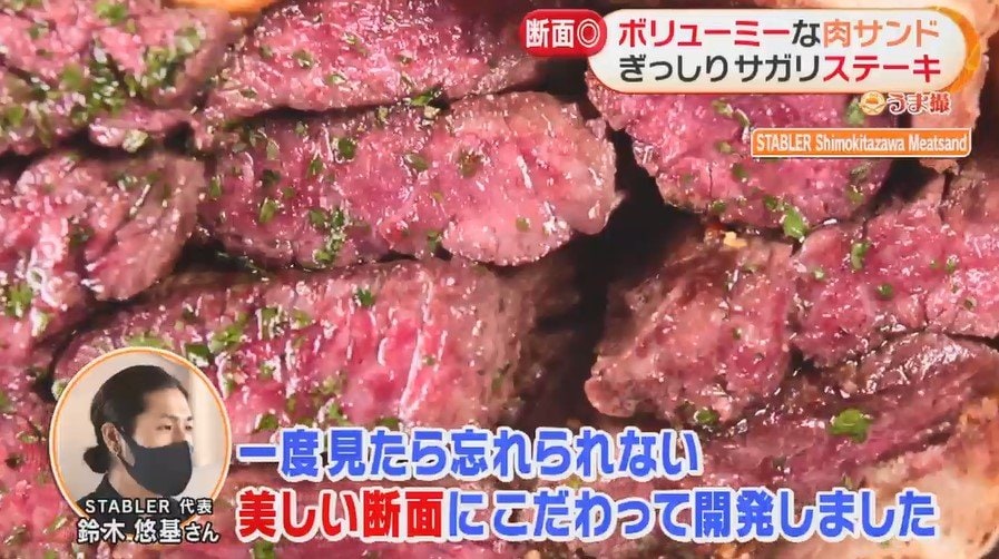 今話題のグルメの映像からヒットの理由を探る新コーナー「うま撮」。今回は、セブン-イレブンやコストコも新商品を発売、味も見た目もインパクト抜群、いま注目を集めている「肉サンド」を調査した。