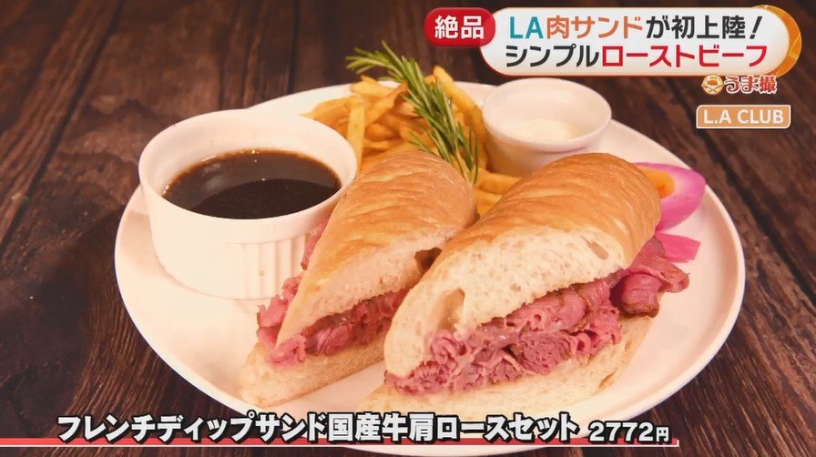 6月、東京都赤坂にオープンしたお店「L.A CLUB」で、日本に初上陸したのは、ロサンゼルス名物のローストビーフサンド「フレンチディップサンド国産牛肩ロースセット」2772円。