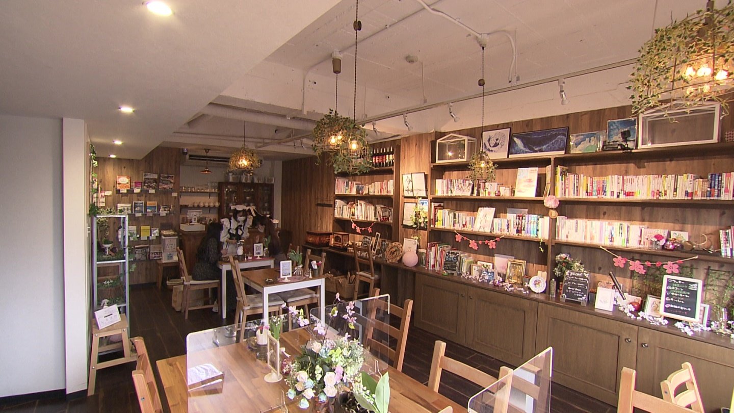 午後1時のオープンと共に、早速お客さんがやって来た。木目調の落ち着いた雰囲気の店内には450冊もの本が並んでいて、コンセプトは“英国の書斎”だ。