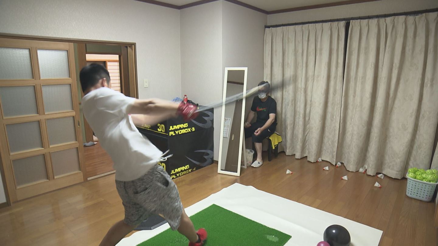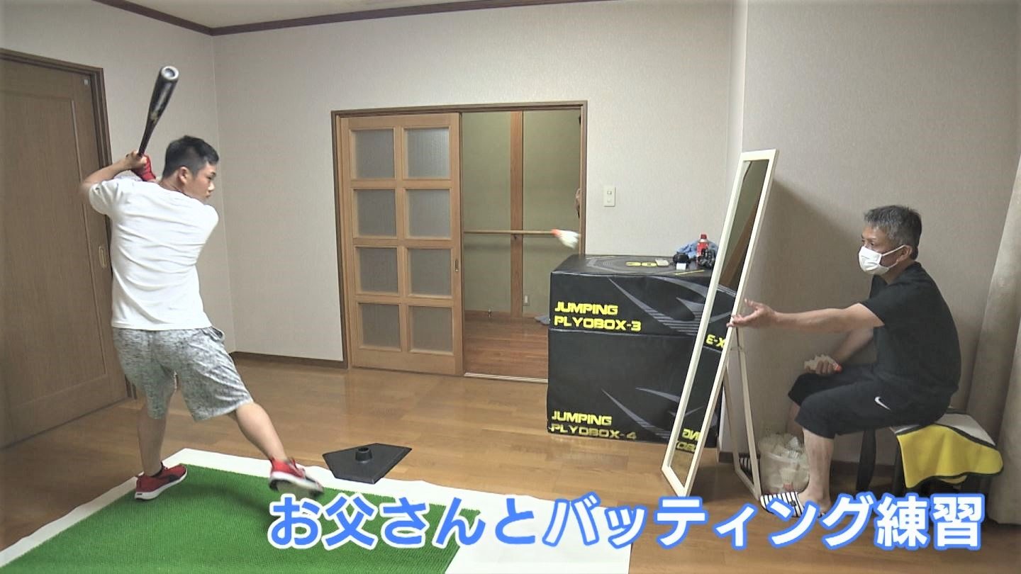 野球が強い高校めざし 自宅でもお父さんとバッティング練習