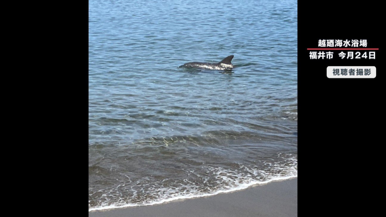 福井市によると、海開き以降、越廼(こしの)海水浴場では、人がイルカにかまれる被害が度々発生。24日には、6件もの被害が報告されました。24日に撮られた別の映像には、泳いでいる人のすぐそばで見え隠れする背びれが…。砂浜には複数の幼い子供の姿も見られ、イルカがかなり浅瀬まで来ている様子が映っていました。