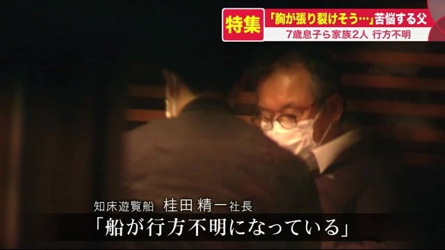 7歳の息子ら家族2人が行方不明となっている父親は事故当日、ウトロに到着。現地で知床遊覧船の桂田精一社長から「船が行方不明になっている」と説明を受けたという。