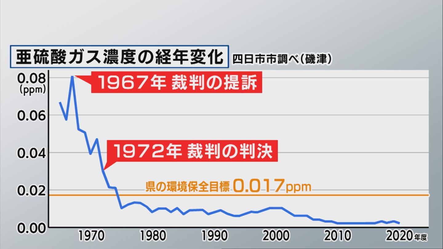 裁判を契機に公害対策が進み、企業は1000億円をかけて「亜硫酸ガス」の除去装置などを作った。三重県は工場ごとに亜硫酸ガスの「総量規制」を実施し、国よりも厳しい環境基準を設けて判決の4年後に下回った。