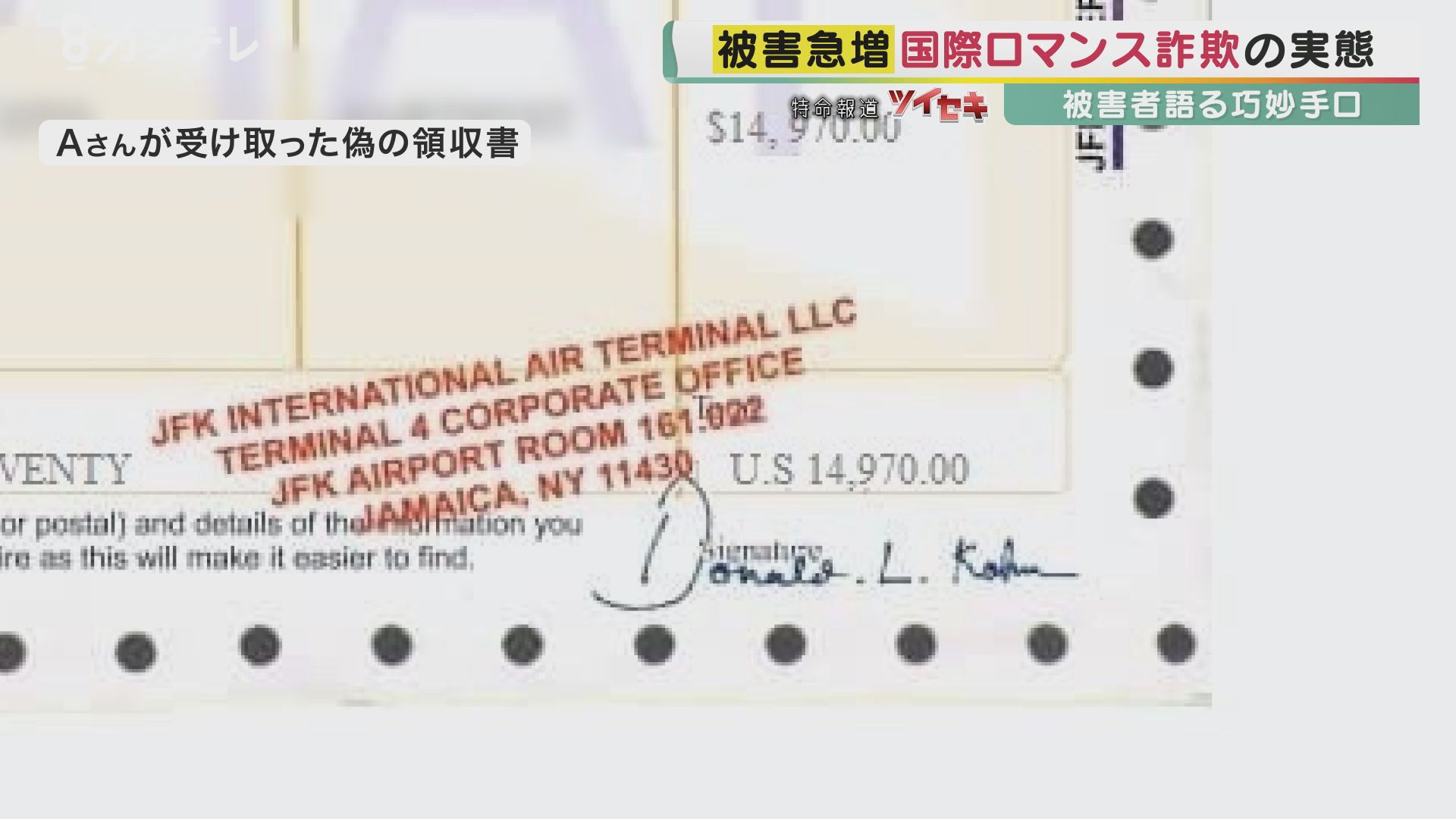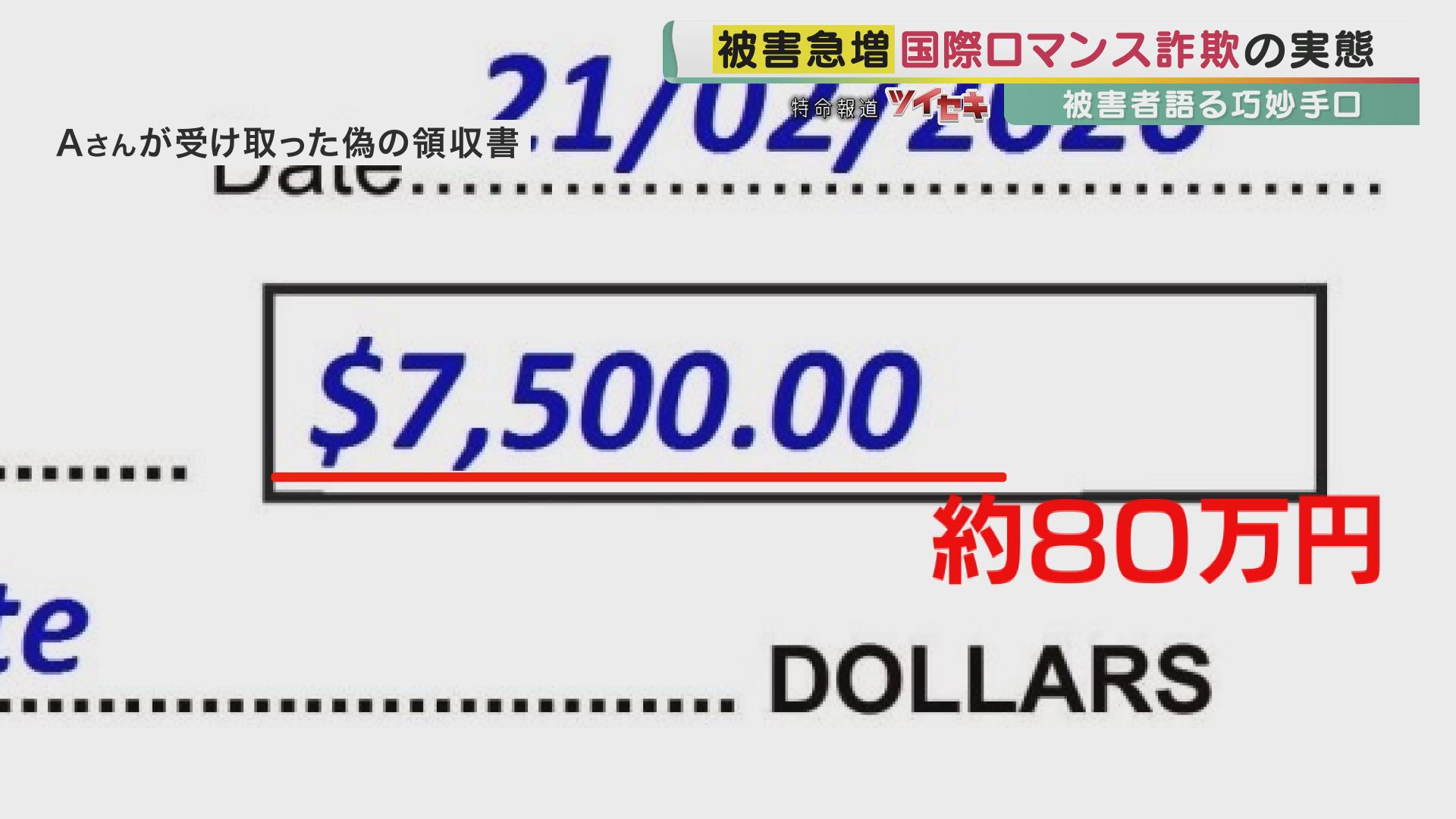 Aさんは凍結させてしまったという責任を感じ、申し訳ないという気持ちから7500ドル(約80万円)を立て替え、指定された口座に振り込んだ。するとその後、ウォードから領収書が届いた。しかし、その領収書は偽物で、信じてしまうくらい手の込んだものだった。