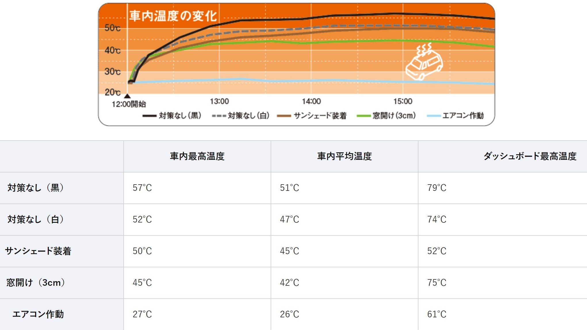 ――夏の時期、車内はどれくらいの温度になる?