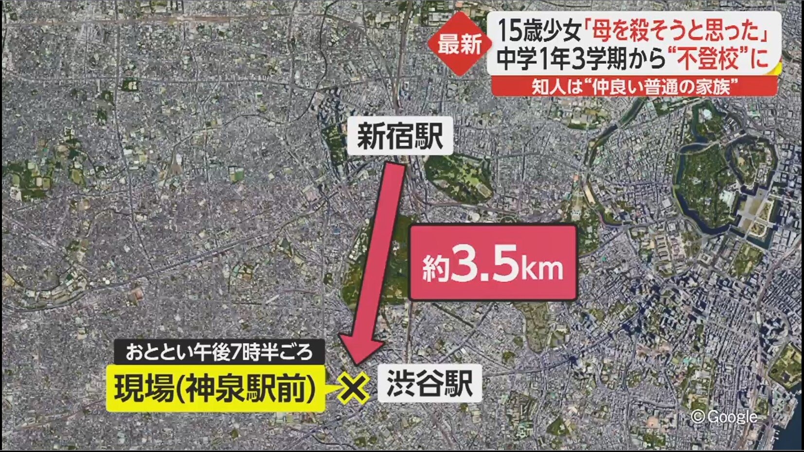 自宅を出る際、凶器の包丁の他にナイフ2本を持っていた少女。新宿駅から犯行現場の神泉駅前までは直線距離で3.5kmほど。週末の繁華街を人通りが少ない場所を探しながら歩き続けていたのだろうか。