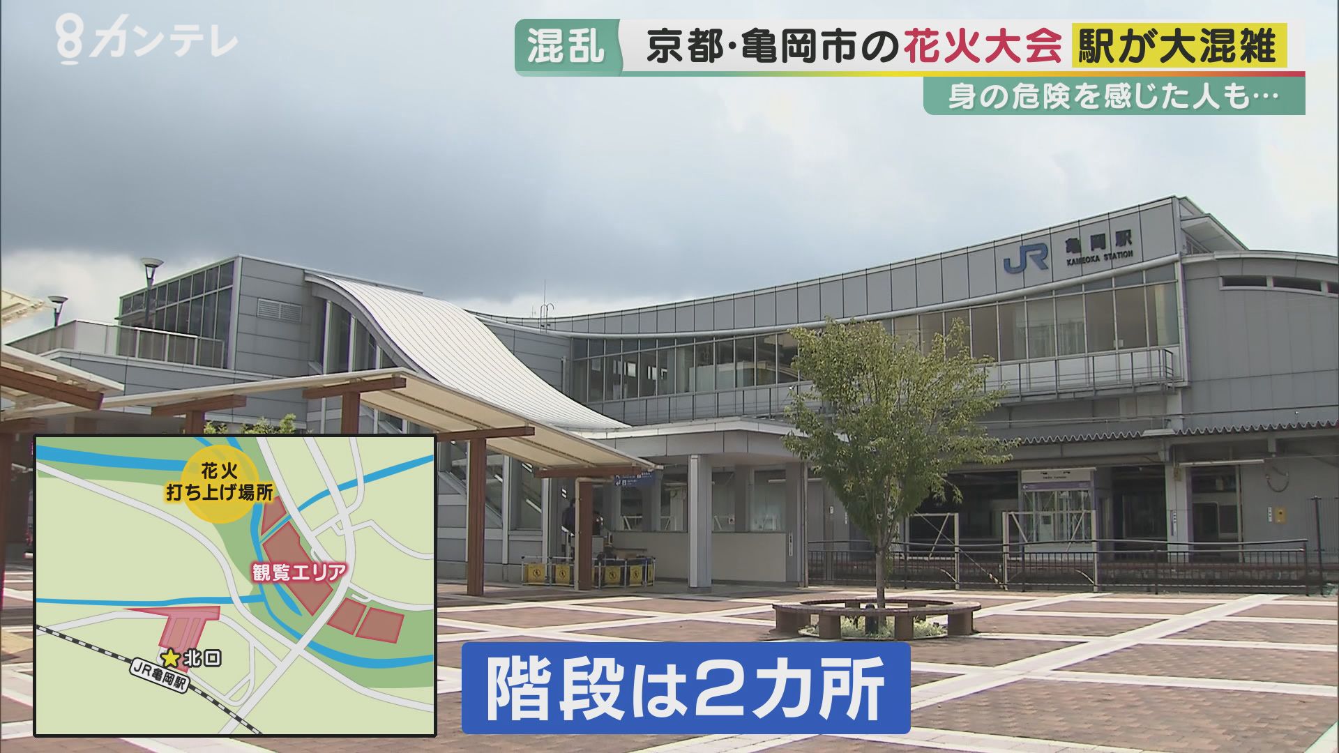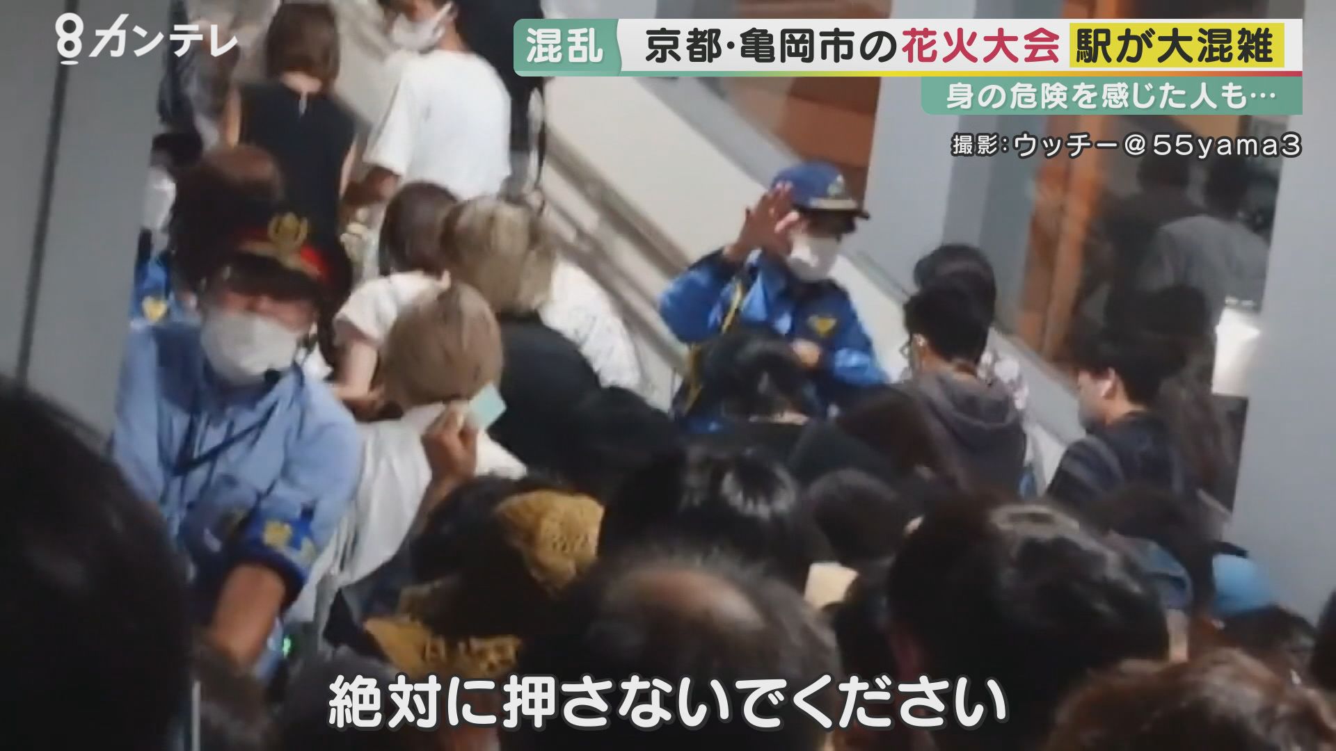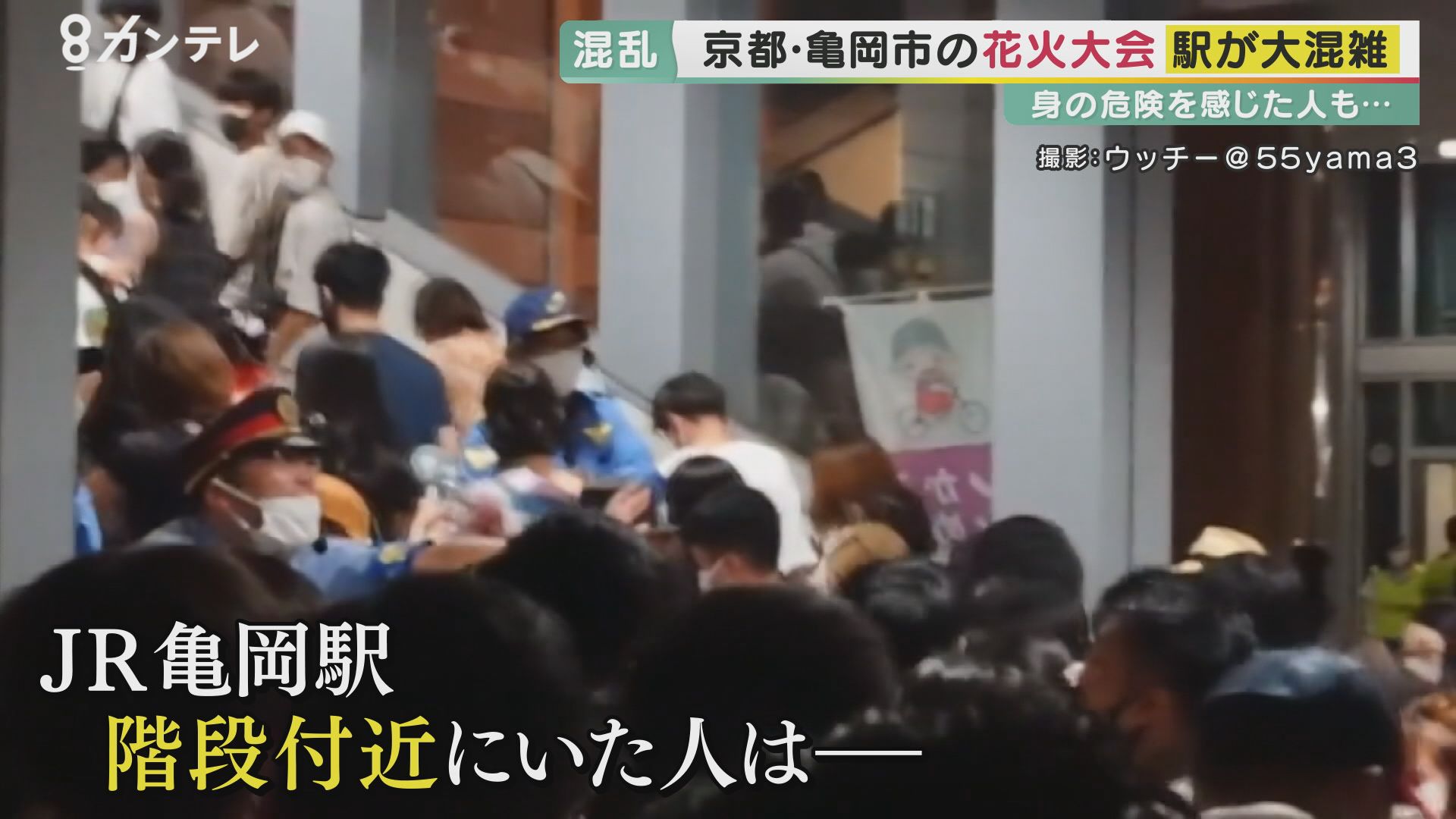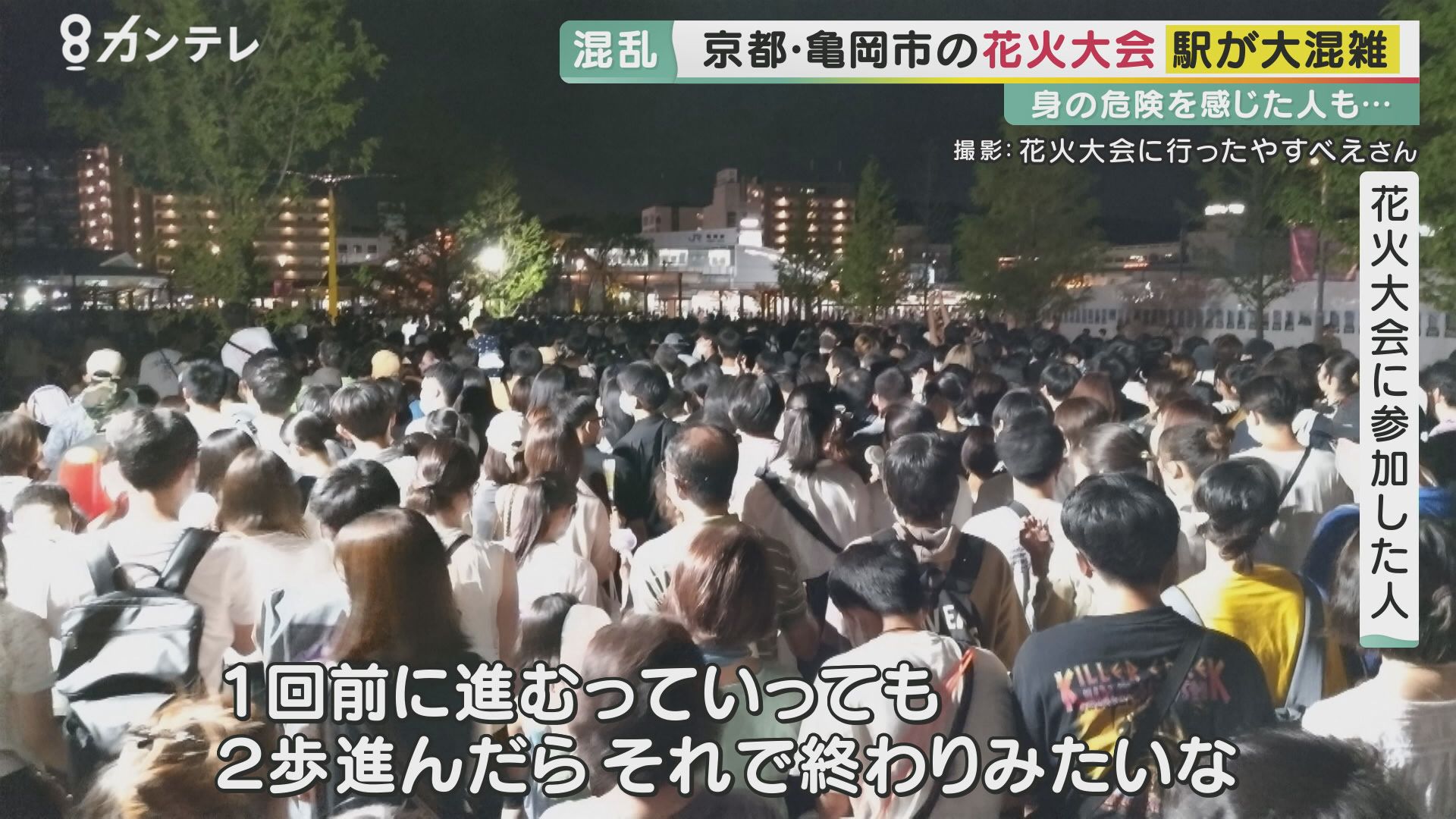 当日、JR亀岡駅で撮影された映像には、花火を見終わって電車に乗ろうとする人たちで大混雑する様子が。