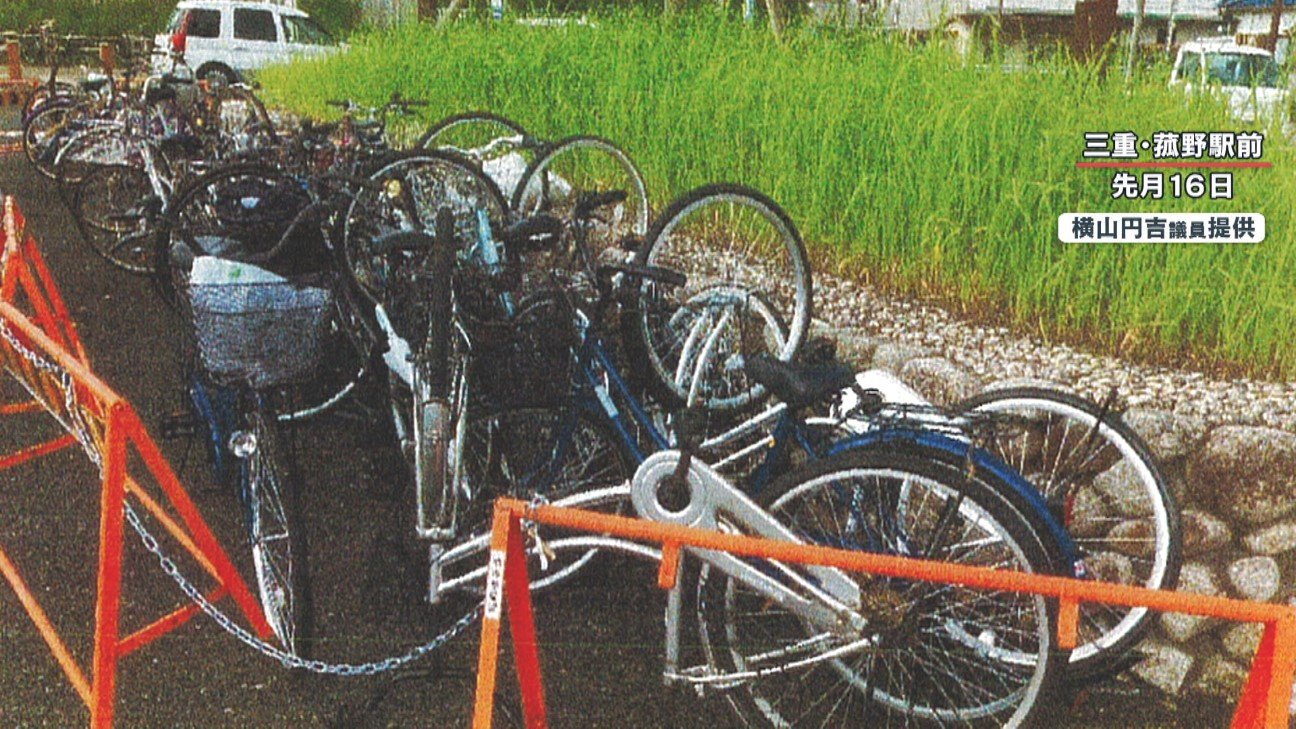 逆さまにしたのは町長だった…背景に放置自転車問題