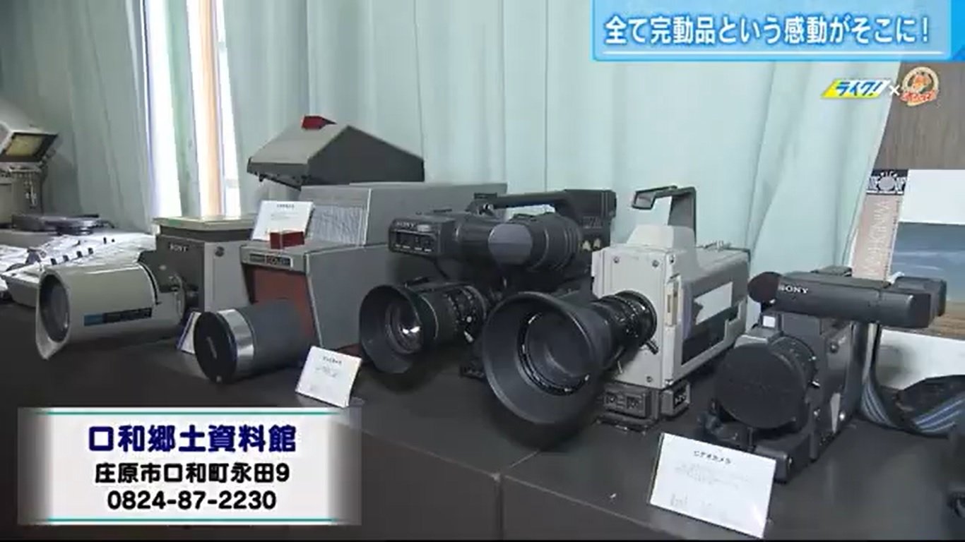 その一室に入ると…。古い映像機器や音響機器が所狭しと並ぶ。ここは、庄原市が運営する口和郷土資料館。
