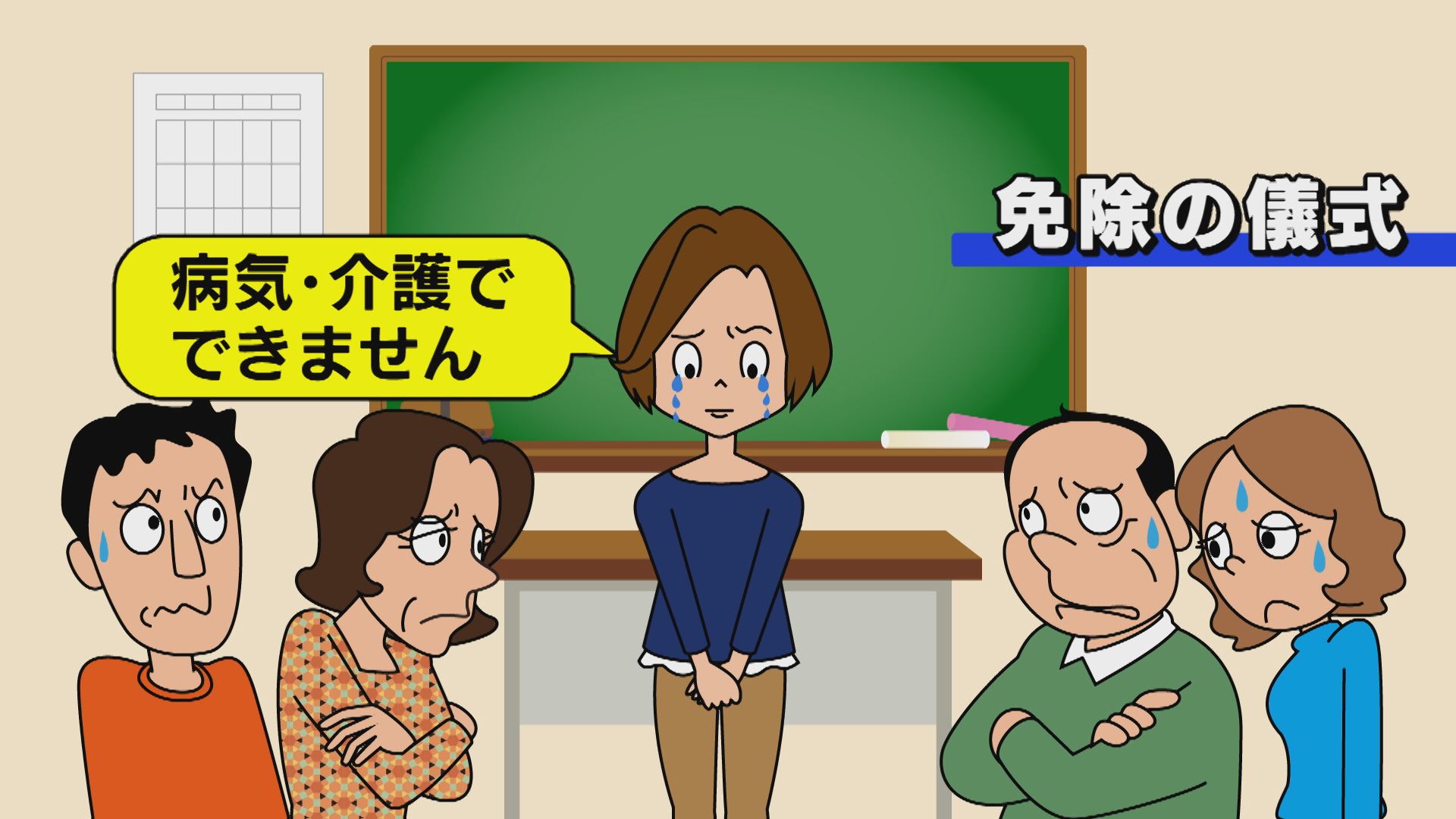 全国のPTAの取材を続ける専門家に聞くと、役員選びのときは「免除の儀式」という、異様な手続きをとる学校も少なくないという。