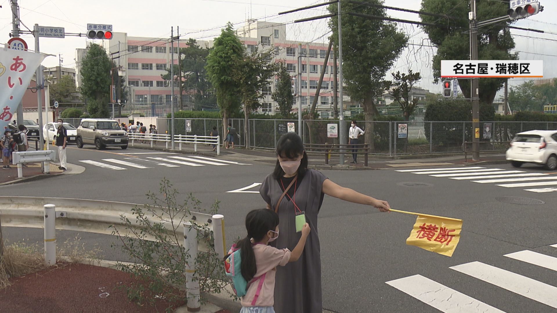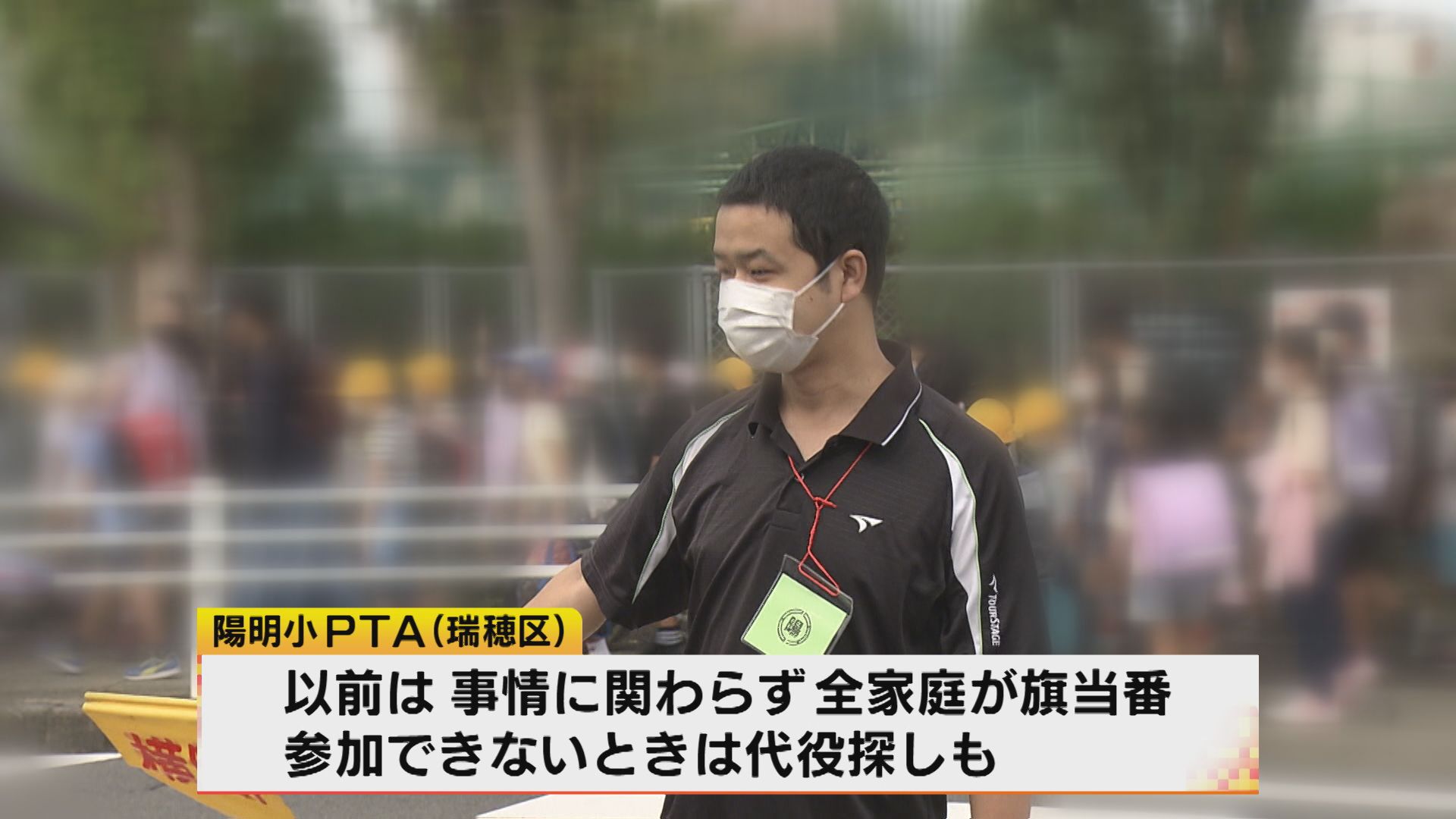 改革に取り組むPTAも出てきている。名古屋市瑞穂区。陽明(ようめい)小学校の保護者が交代で通学を見まもる「旗当番」。