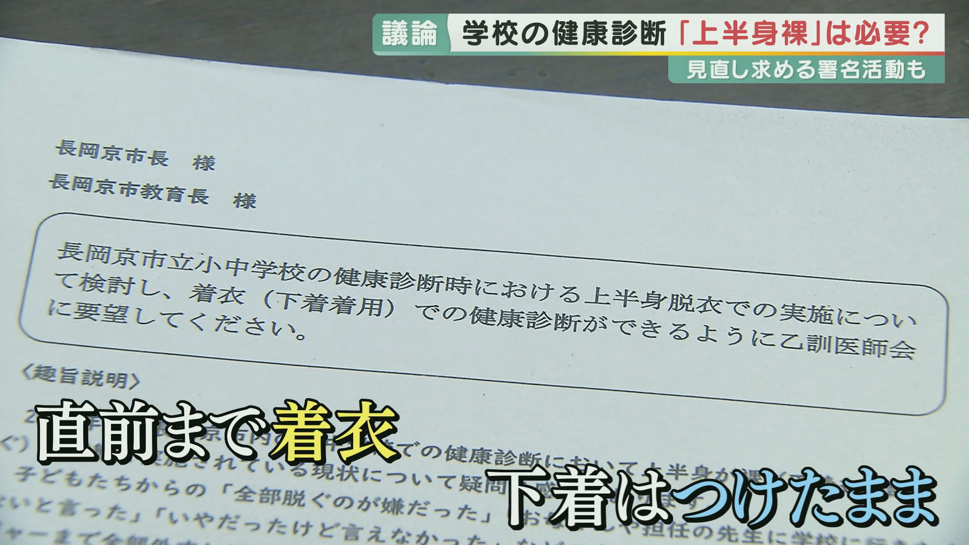 11月22日、上半身裸で行う学校健診の見直しを求め、京都府長岡京市の教育委員会に、5000人を超える署名が提出された。