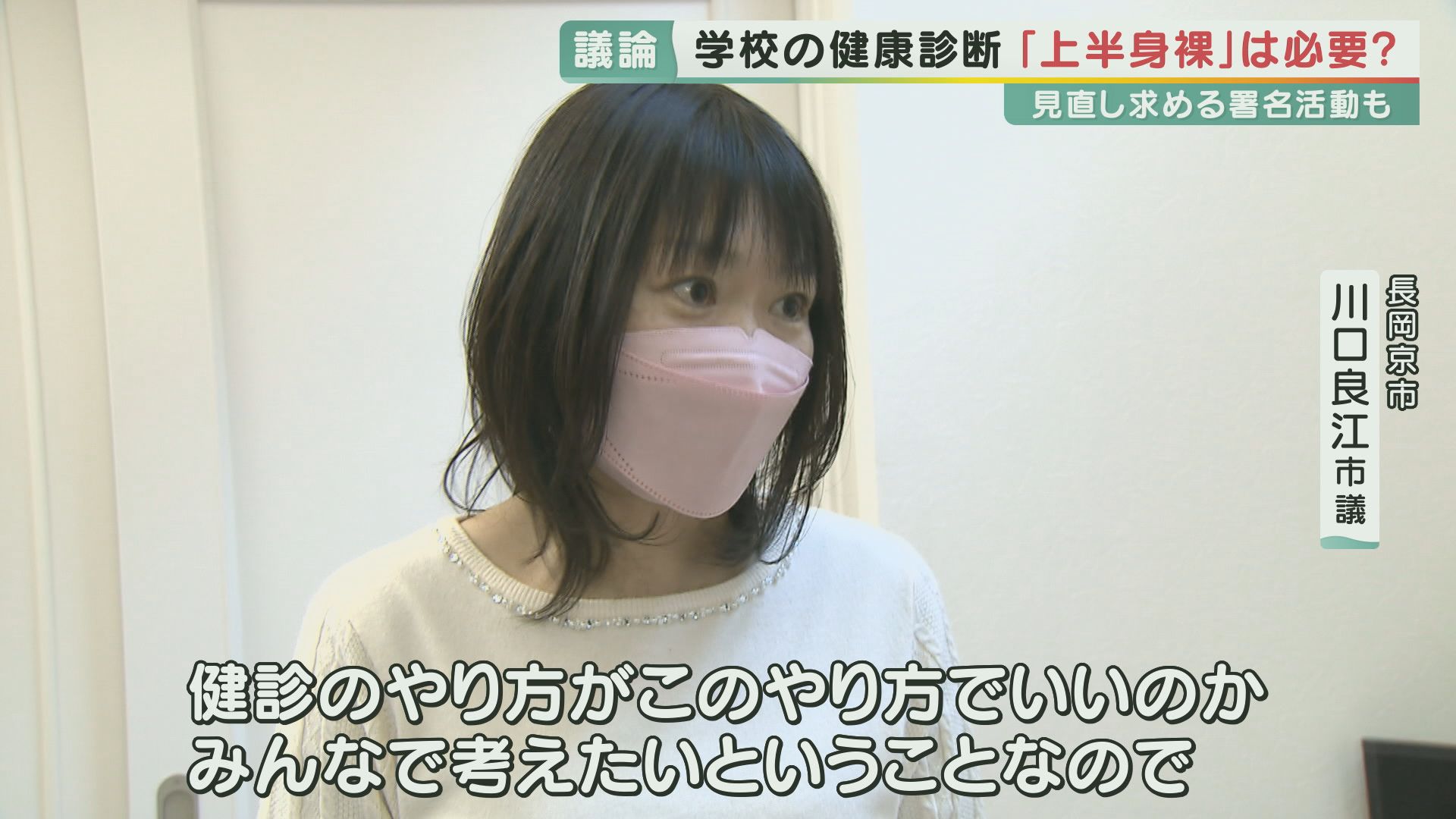 上半身裸にならなくても、タオルなどで隠しながら診察できるのではないか。保護者から相談を受けた川口市議は、まずは子供たちや保護者の声を聞いてもらいたいと、議会で教育委員会にアンケートの実施を求めたが…