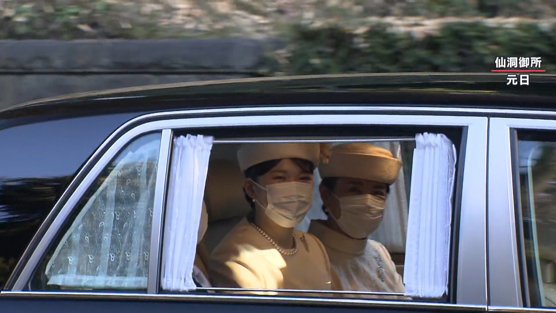 儀式後、愛子さまは淡いピンク色のドレスに帽子姿で、両陛下とともに上皇ご夫妻のお住まいの仙洞御所を訪れ、新年の挨拶をされました。
