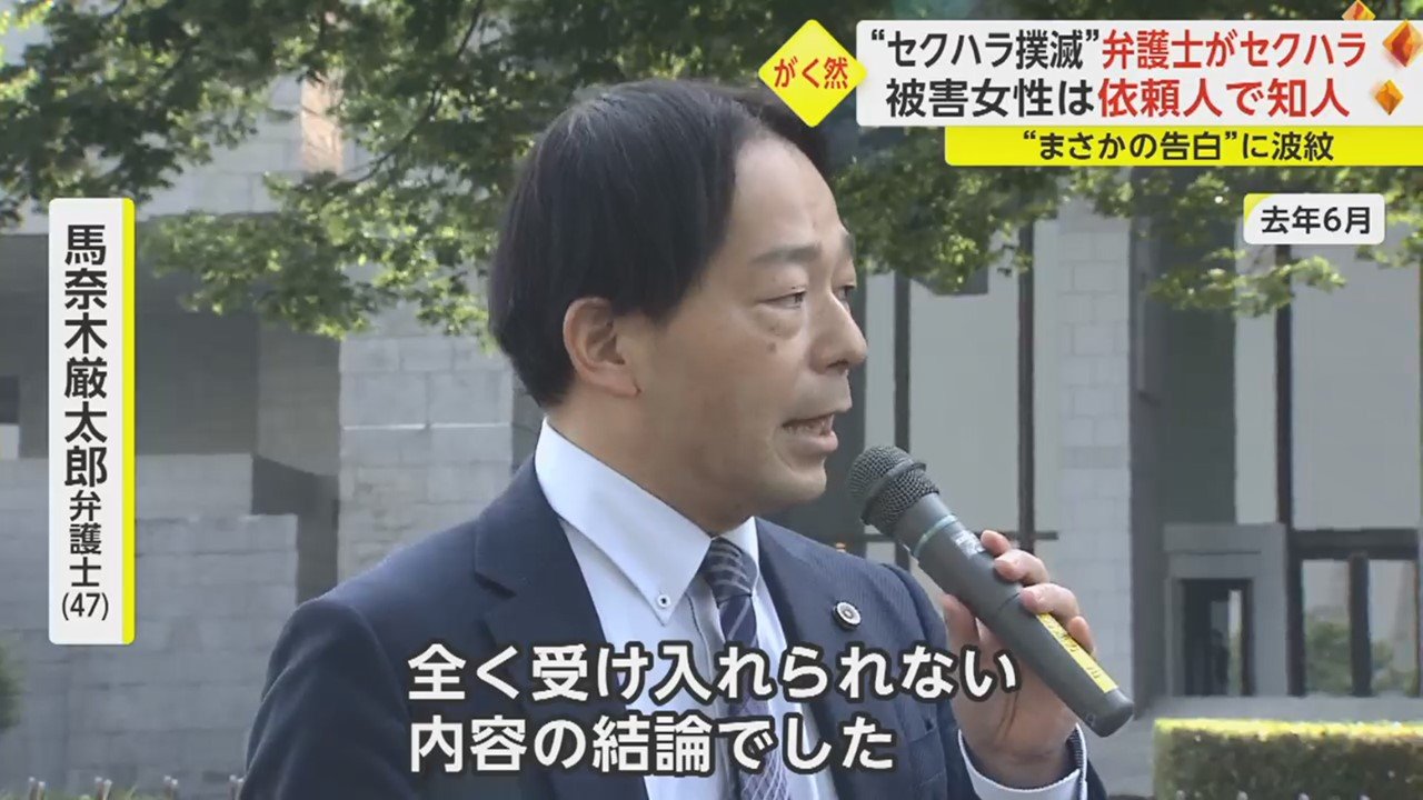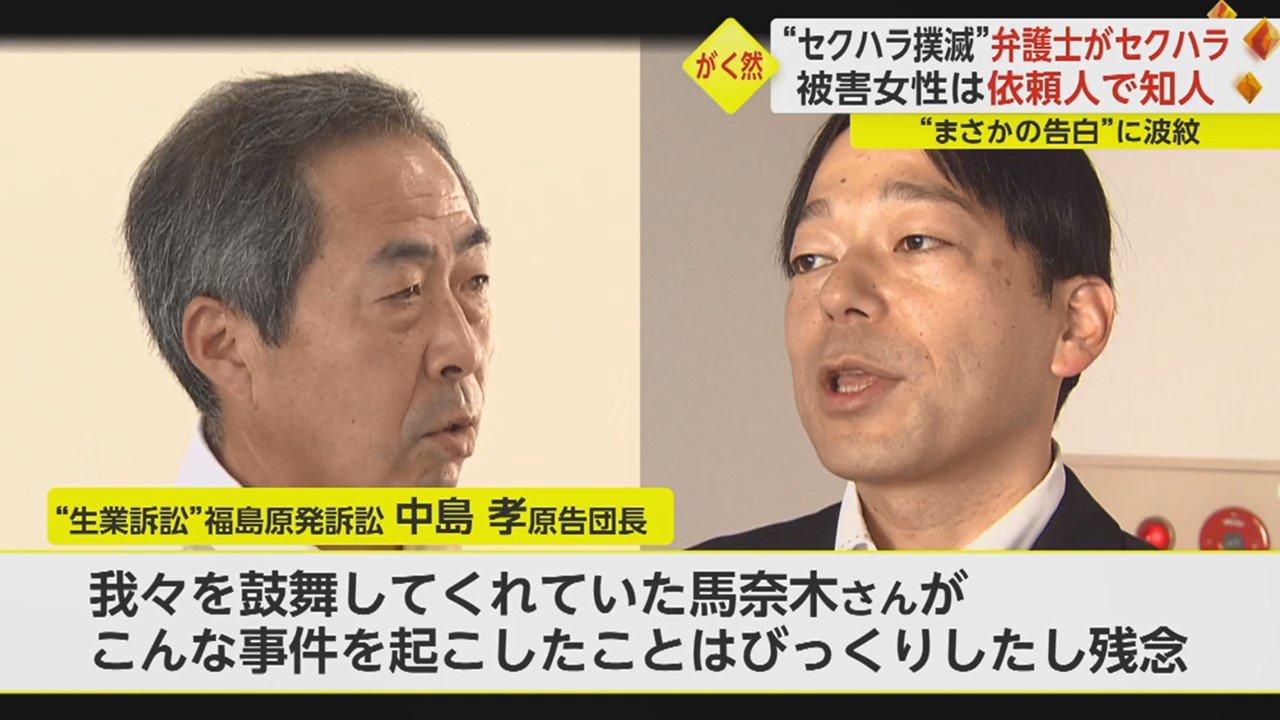 当の馬奈木弁護士が自身のセクハラ行為を自覚したのが去年の末のこと。