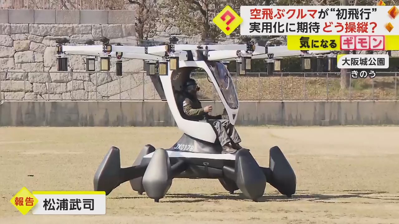 大阪城前の公共スペースで、空飛ぶクルマの実証実験が行われた。