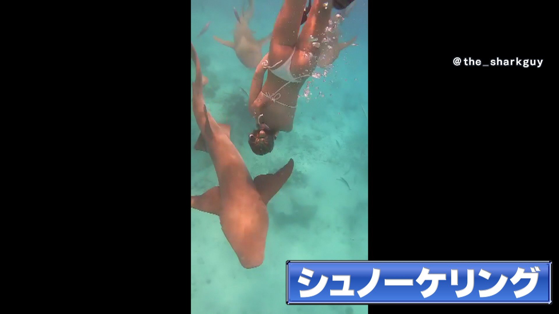 サメとともにシュノーケリングしているのは、休暇でモルディブを訪れていた看護師のサーヴェロさん(30)。