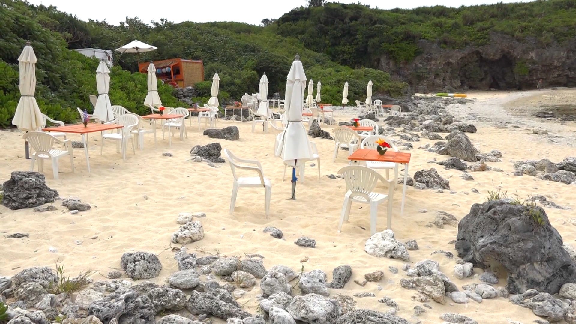 さらに、ビーチには男性が不法に設置したとみられる、パラソルやテーブルが。