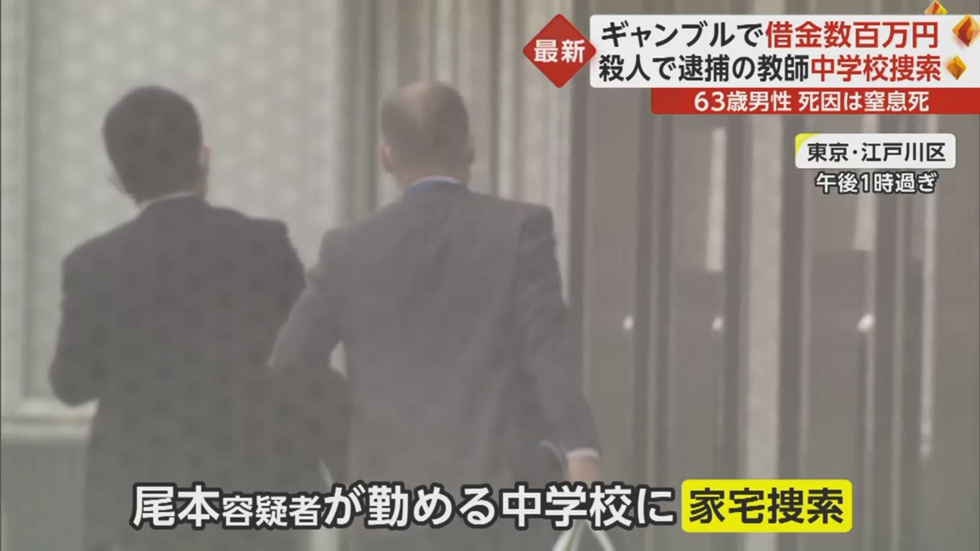 午後1時過ぎには、尾本容疑者の勤務先の中学校に警視庁の捜査員らが家宅捜索に入った。
