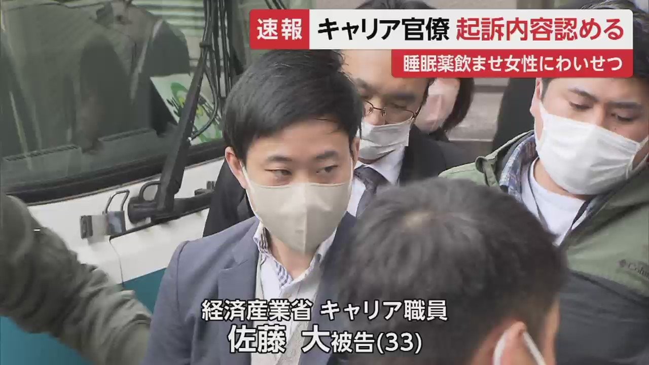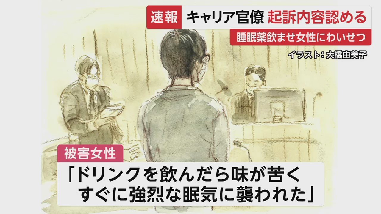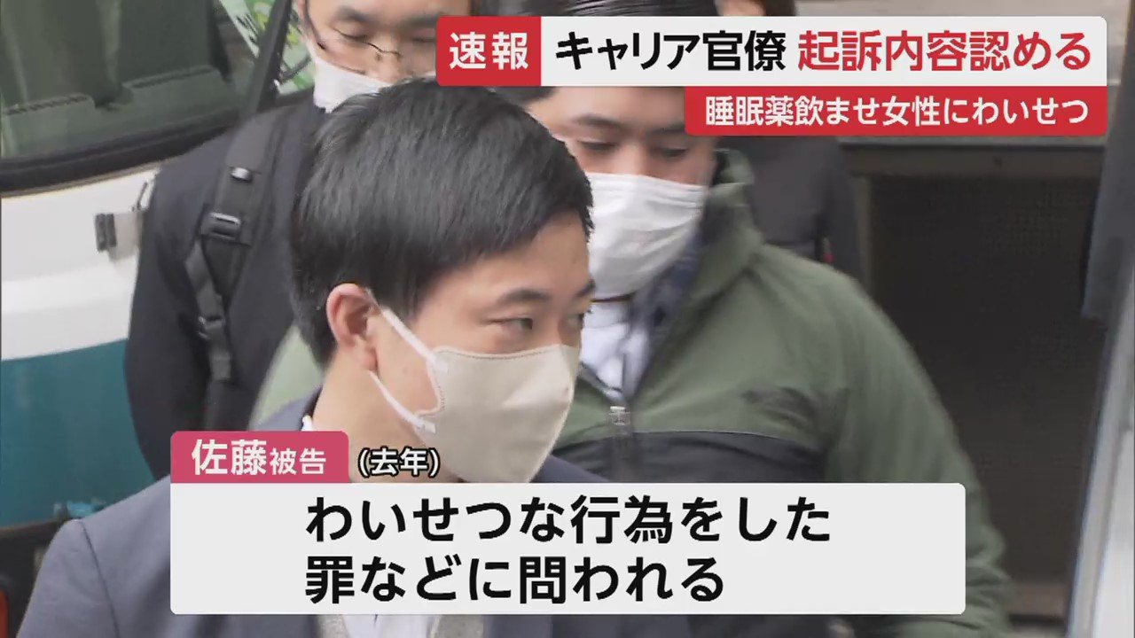 キャリア官僚の男が、女性に睡眠薬入りの飲み物を飲ませわいせつな行為をした罪などに問われた裁判の初公判で、男が起訴内容を認めた。