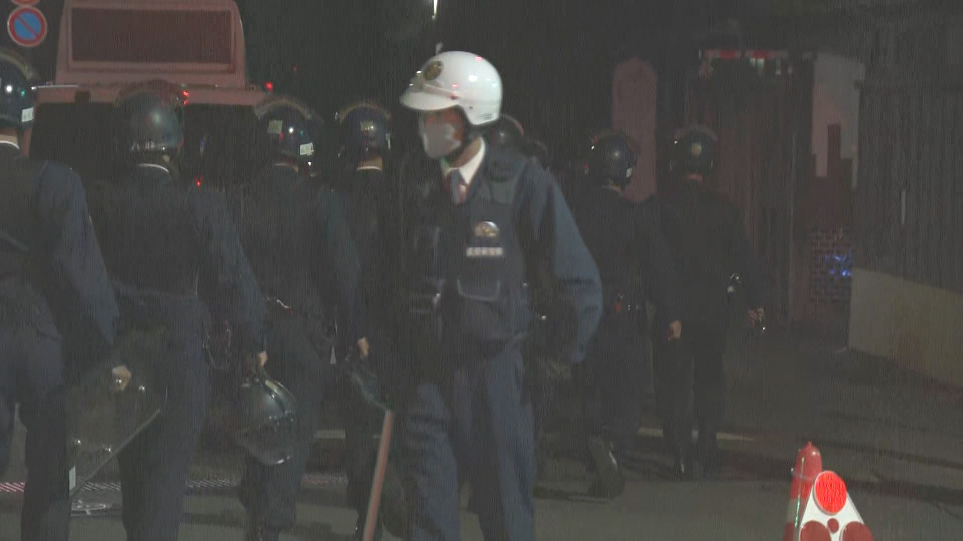 「ヘルメットをかぶり盾を持った警察官たちが中に入っていきます」
